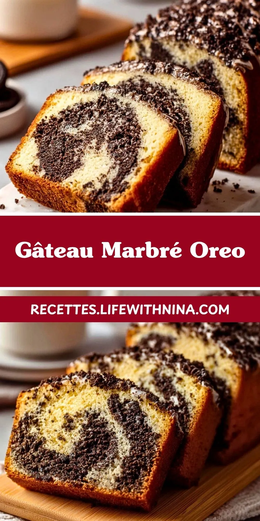 Le gâteau marbré Oreo plaît autant parce qu’il associe deux plaisirs en une seule bouchée : la douceur réconfortante d’un cake moelleux et la saveur intense, légèrement cacaotée, des biscuits Oreo. Les morceaux finement écrasés apportent du goût, de la couleur et une texture fondante qui enrichit la pâte sans la rendre lourde. C’est une recette simple, mais avec un effet visuel et gustatif qui donne immédiatement envie d’y revenir.