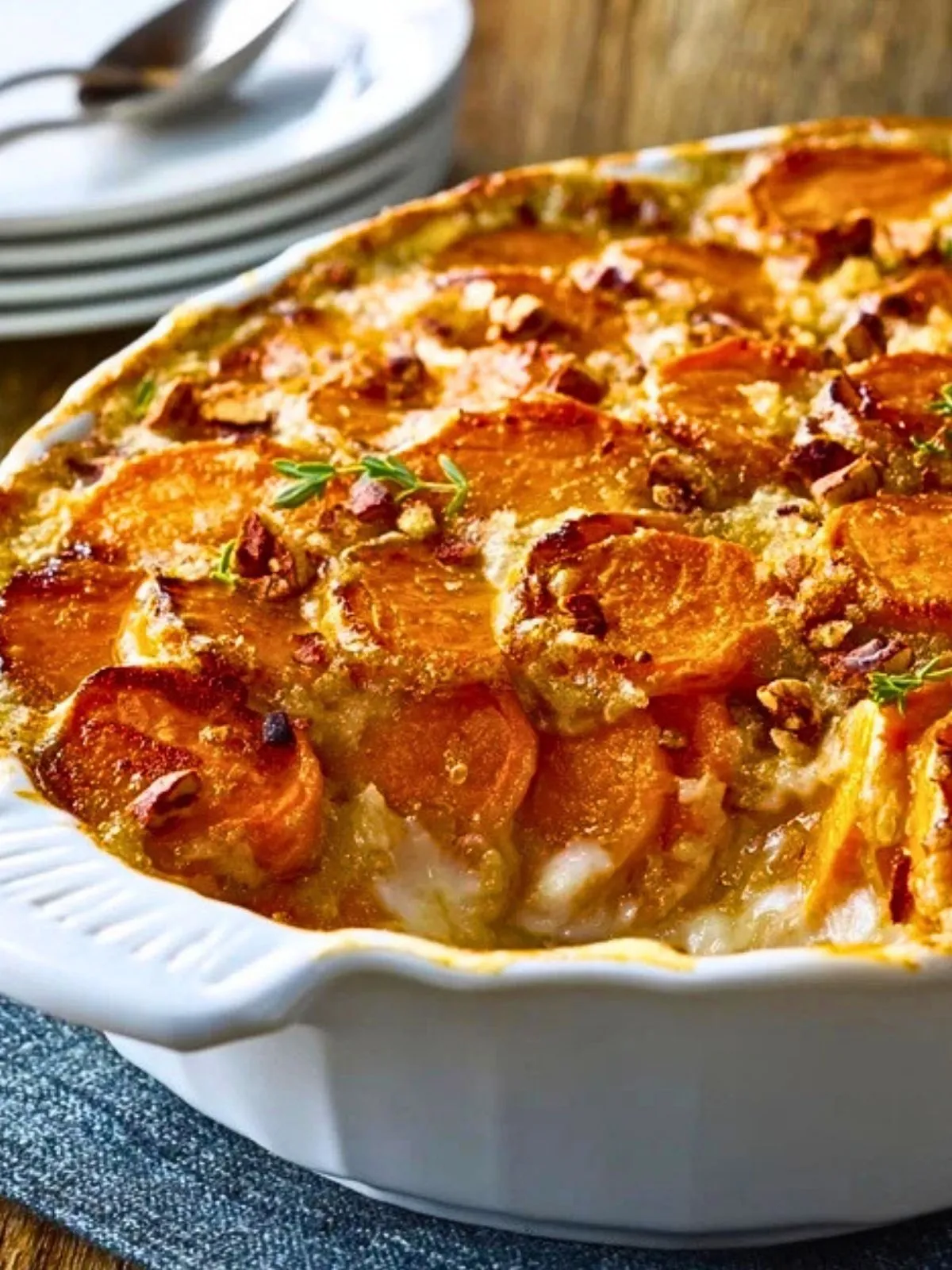Ce gratin de patates douces aux yams en boîte est une recette réconfortante, parfaite pour les repas familiaux ou les tables de fête. Il associe la douceur naturelle des patates douces à l’onctuosité d’une base crémeuse, relevée par une touche d’assaisonnement bien équilibrée.