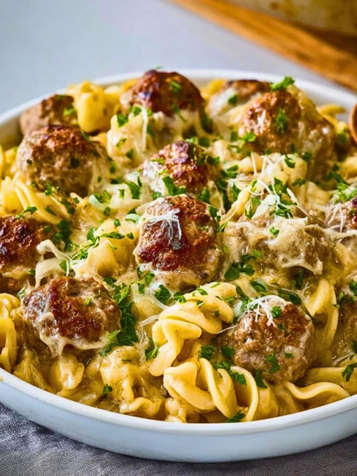 Un plat réconfortant et convivial, alliant des boulettes de viande moelleuses à des pâtes fondantes dans une sauce crémeuse, le tout gratiné au four avec du fromage fondant. Idéal pour réchauffer les cœurs et partager un moment gourmand en famille ou entre amis.