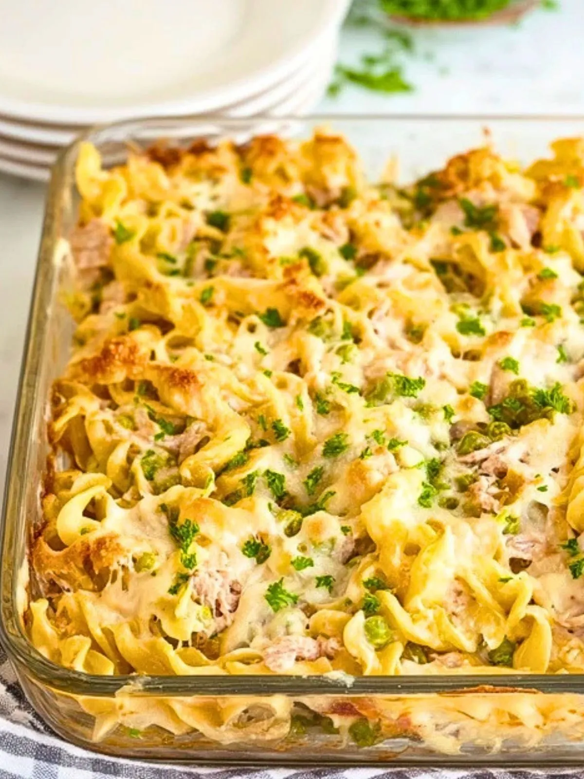 Gratin de thon fondant aux pâtes, champignons, petits pois et fromage gratiné. Ce plat familial réunit une sauce crémeuse, du thon émietté et un mélange de fromages dorés au four pour un résultat simple, généreux et réconfortant. Parfait pour un dîner pratique, économique et savoureux, il se prépare facilement avec des ingrédients du placard.