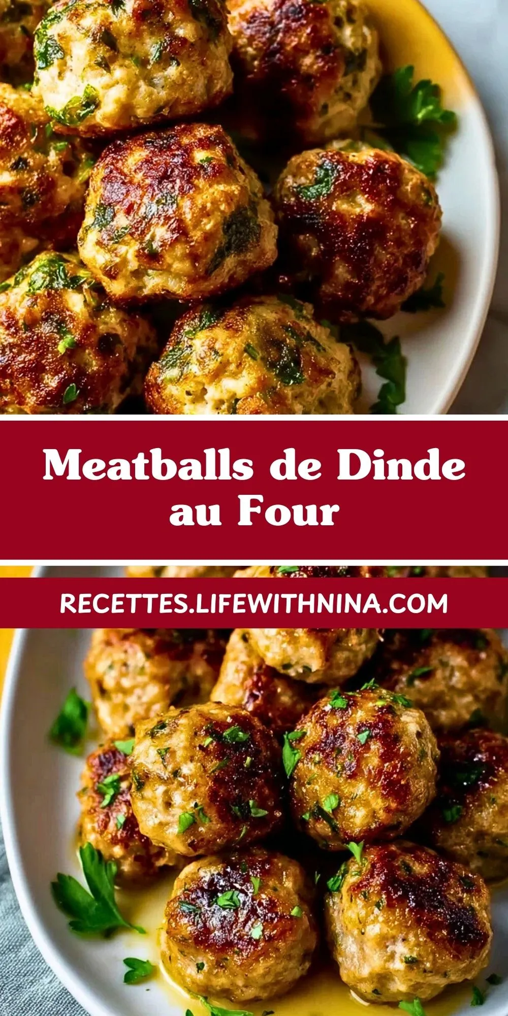 Des boulettes de dinde moelleuses, savoureuses et dorées au four. Parfaites pour un repas sain, rapide et convivial, accompagnées de sauce tomate, de pâtes ou à l’apéritif.