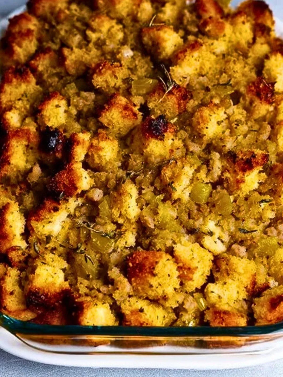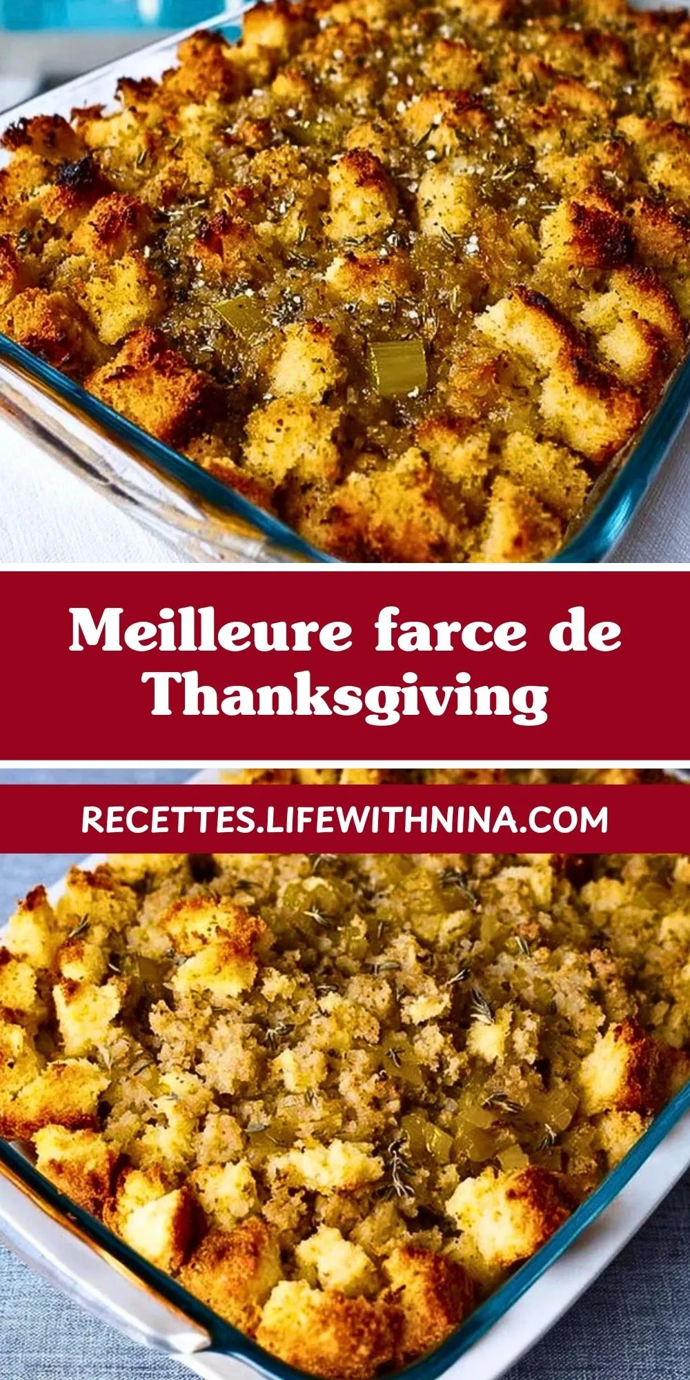 La farce est un incontournable des tables de fêtes, surtout pour Thanksgiving ! Imaginez de gros morceaux de pain doré, imprégnés de beurre, d’oignons fondants et d’herbes fraîches, avec une croûte croustillante à souhait. Cette recette classique est celle qui rassemble la famille autour de la table, chacun voulant sa part généreuse et dorée.
