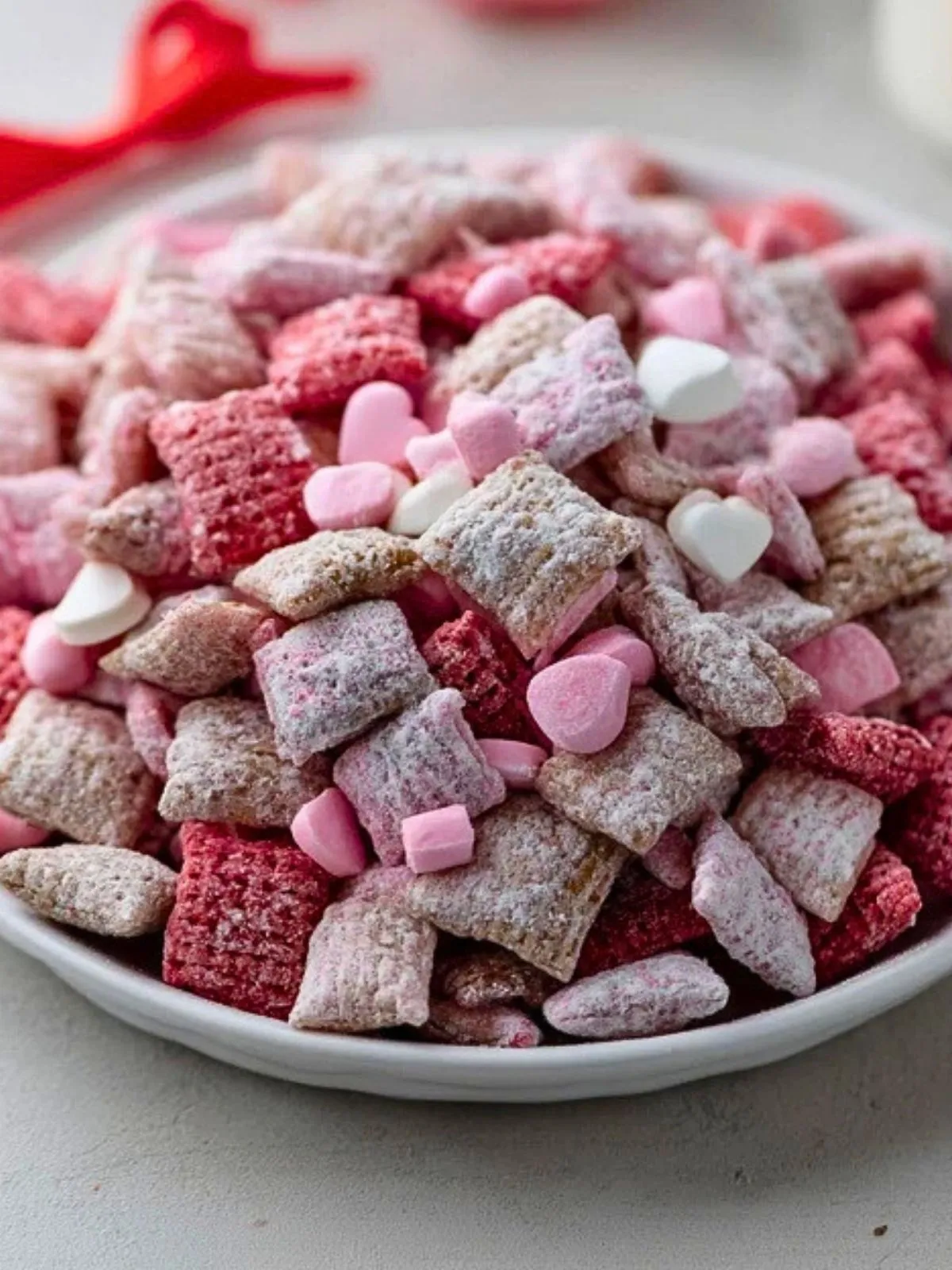 Ce mélange sucré de Saint-Valentin est une gourmandise festive, colorée et irrésistiblement simple à préparer pour célébrer une occasion romantique ou partager un moment tendre en famille. Entre les céréales croustillantes, le chocolat fondu, le sucre glace et les petites friandises aux tons roses, blancs et rouges, chaque poignée offre un mélange de textures croquantes et fondantes qui plaît autant aux enfants qu’aux adultes.