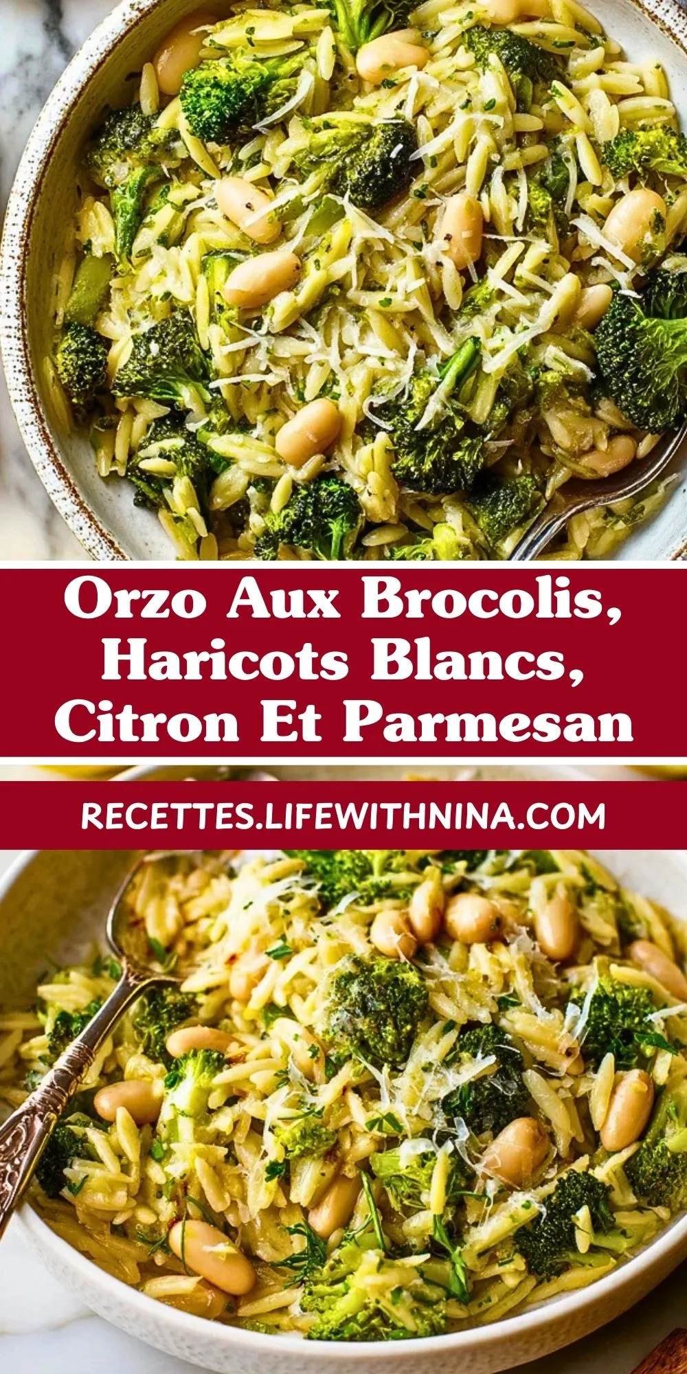 Épinglez cet orzo aux brocolis, haricots blancs, citron et parmesan