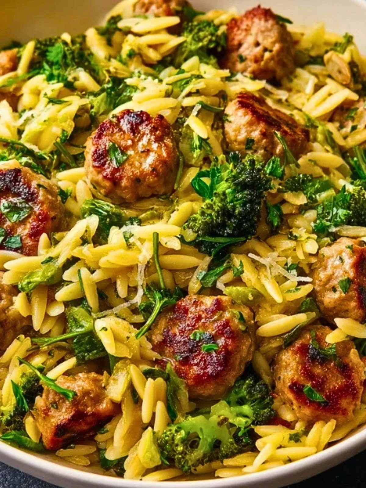 Découvrez un plat réconfortant qui marie à la perfection la gourmandise des saucisses dorées, la tendresse du brocoli et le moelleux de l’orzo, cette petite pâte en forme de grain de riz adorée en cuisine méditerranéenne. L’ensemble est relevé de quelques herbes fraîches pour une touche aromatique qui parfume toute la maison. C’est le genre de recette généreuse et colorée, prête en moins de 30 minutes, qui plaît autant aux grands qu’aux petits.