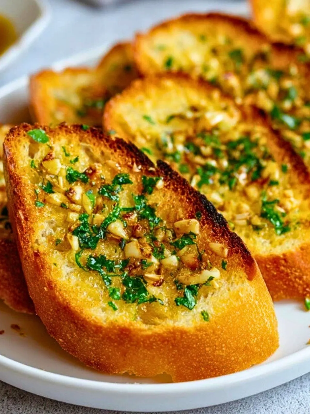 La combinaison du pain frais, du beurre fondu, de l’ail parfumé et du persil haché crée un équilibre parfait entre croquant, fondant et saveur. Lorsqu’il est servi chaud, le pain à l’ail diffuse un parfum qui met immédiatement l’eau à la bouche. Le côté croustillant à l’extérieur contraste délicieusement avec la tendreté intérieure, ce qui en fait un accompagnement ou une entrée parfaite.