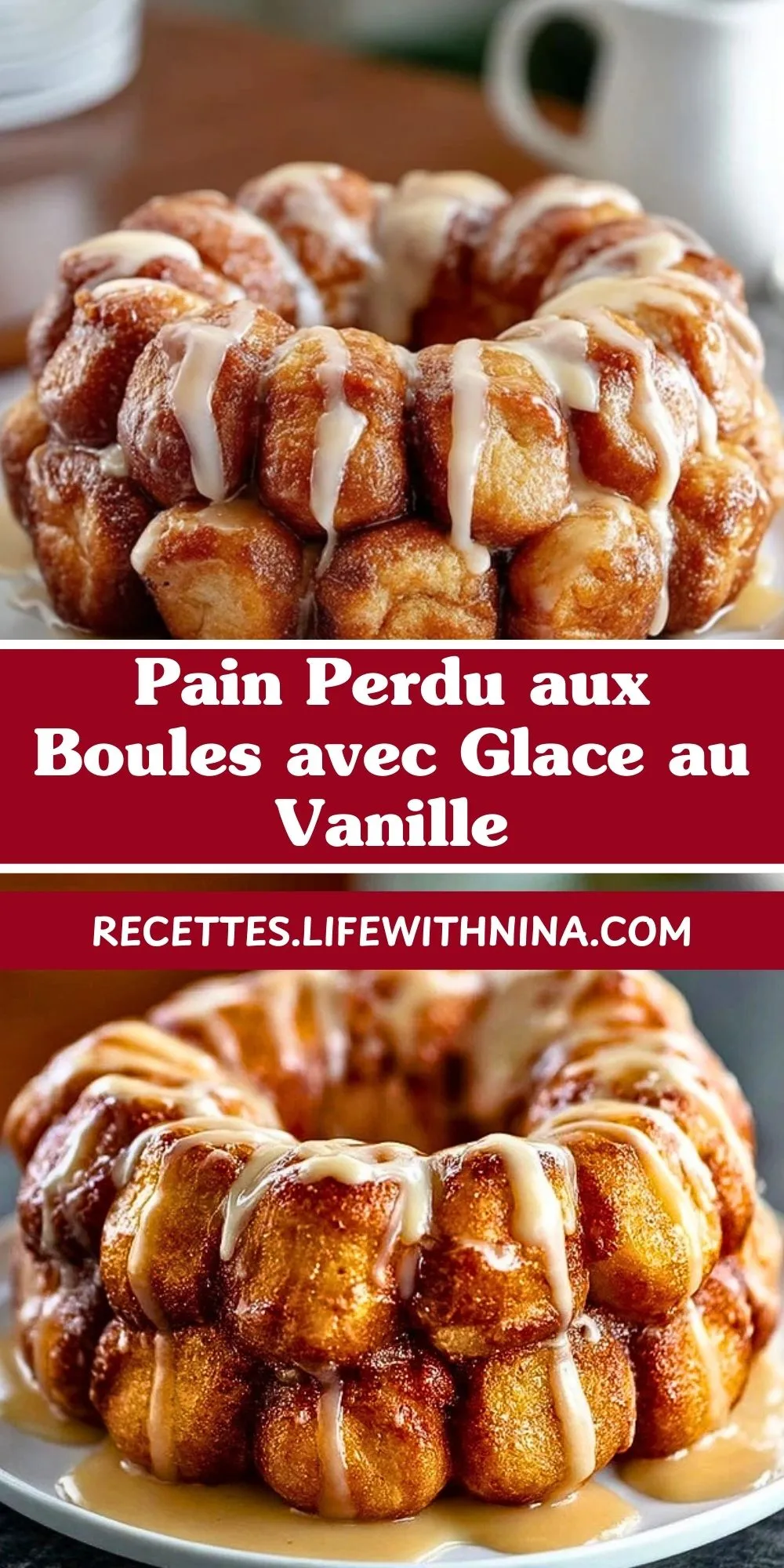 Voici une version festive et ludique du pain perdu, transformée en couronne de petites boules briochées ultra moelleuses, nappées d’un glaçage vanillé et servies encore tièdes avec une boule de glace. Ce dessert généreux est un véritable appel à la gourmandise : chaque bouchée mêle le fondant de la brioche, le parfum de la vanille et le contraste du chaud et du froid. Idéal pour un brunch dominical ou un goûter d’exception.