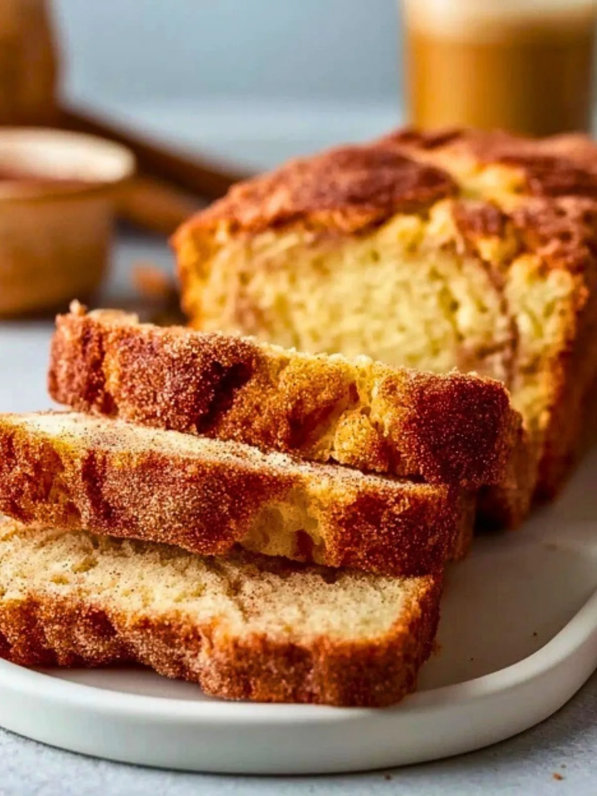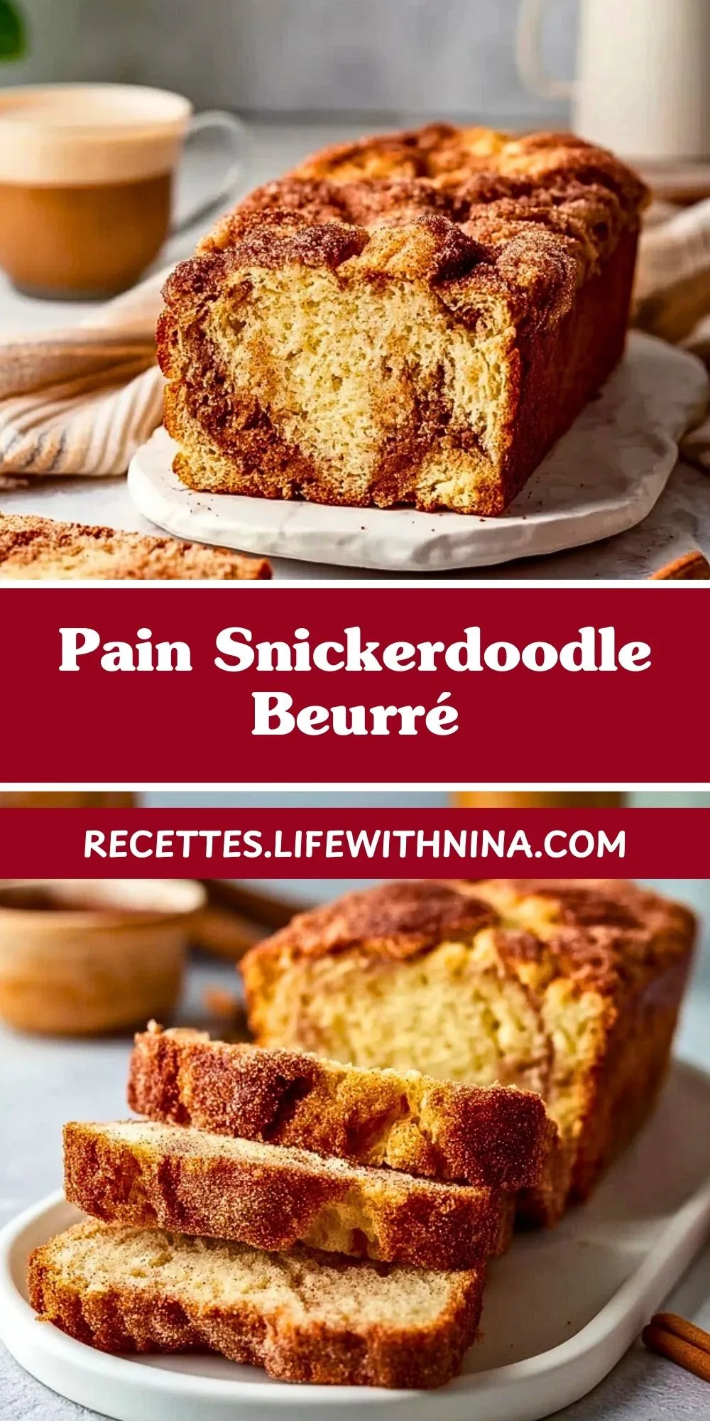Un pain moelleux et beurré, délicatement parfumé à la cannelle et à la vanille, avec une croûte légèrement croustillante de sucre et de cannelle. Parfait pour le goûter ou le petit-déjeuner, il combine la texture d’un cake et le goût réconfortant du fameux snickerdoodle.