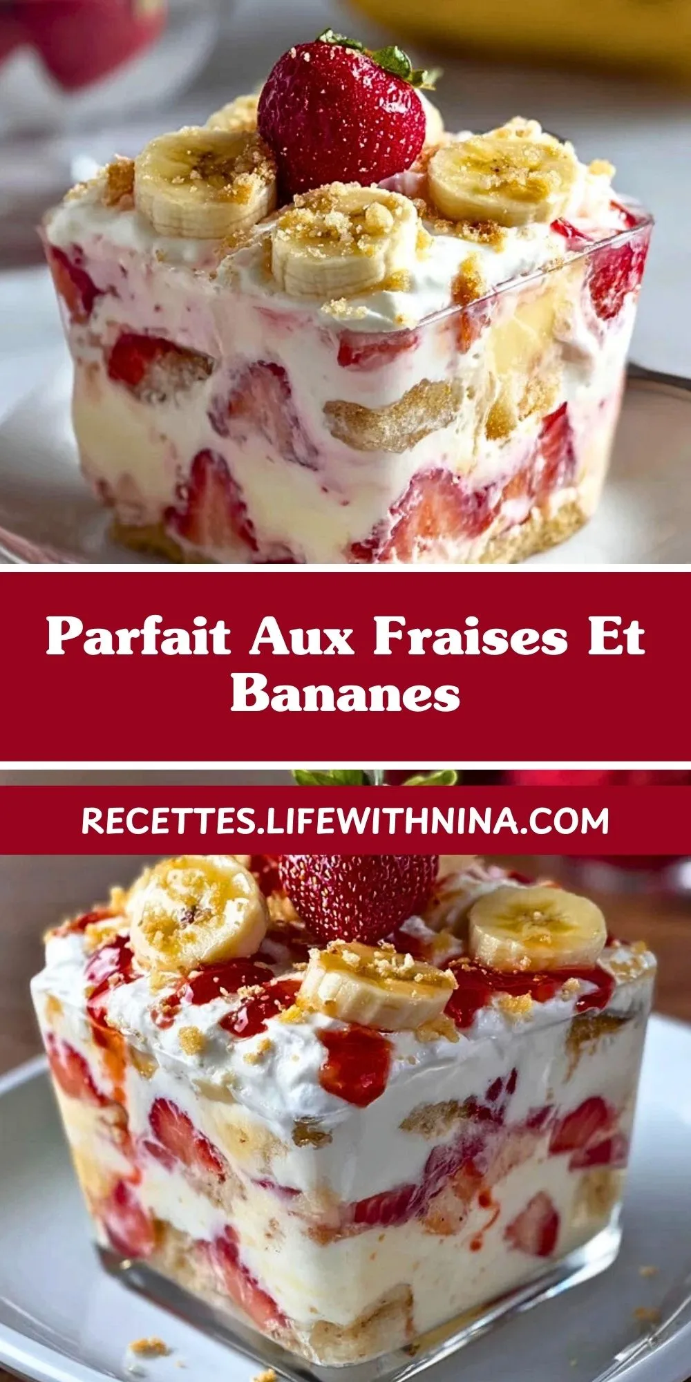 Keywords: parfait aux fraises et bananes, dessert fruité, verrine aux fruits, dessert sans cuisson, fraises bananes
