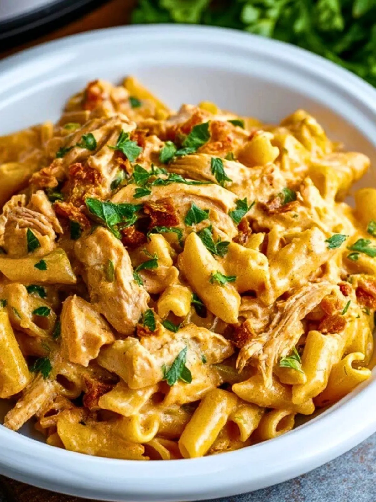 Inspirée par les cuisines du Sud des États-Unis, cette recette s’adapte parfaitement à nos tables françaises. Elle est idéale pour faire voyager vos papilles sans quitter la maison, grâce à l’équilibre des épices cajun, du parmesan fondant et des tomates séchées, qui viennent sublimer le poulet et les pâtes.