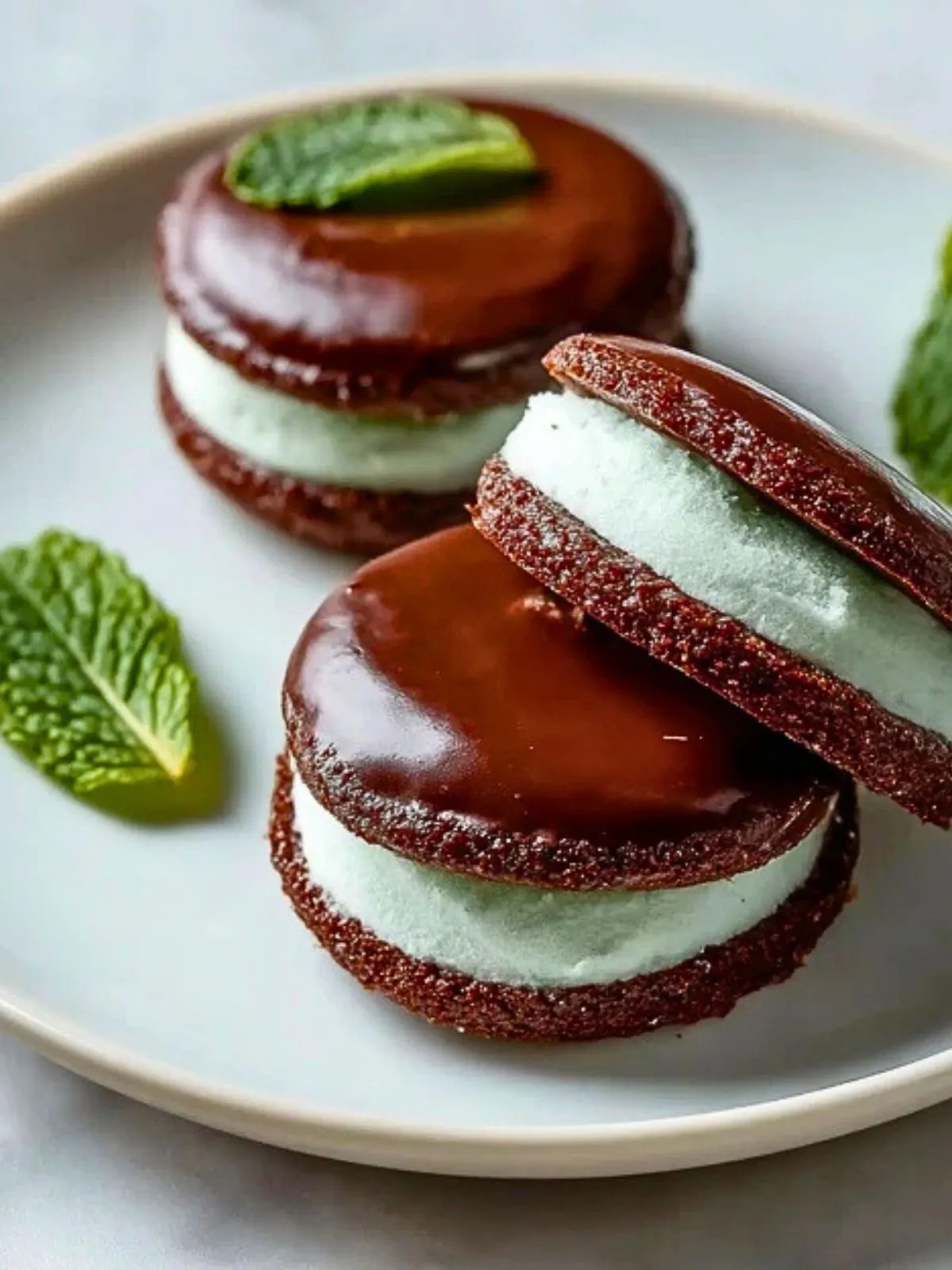 Ces pâtisseries à la menthe se dégustent idéalement bien fraîches, accompagnées d’un thé vert ou d’un expresso. Pour les conserver, placez-les au réfrigérateur dans une boîte hermétique : elles garderont leur moelleux et leur fraîcheur pendant 2 à 3 jours. Évitez de les exposer à la chaleur, le glaçage au chocolat pourrait fondre.