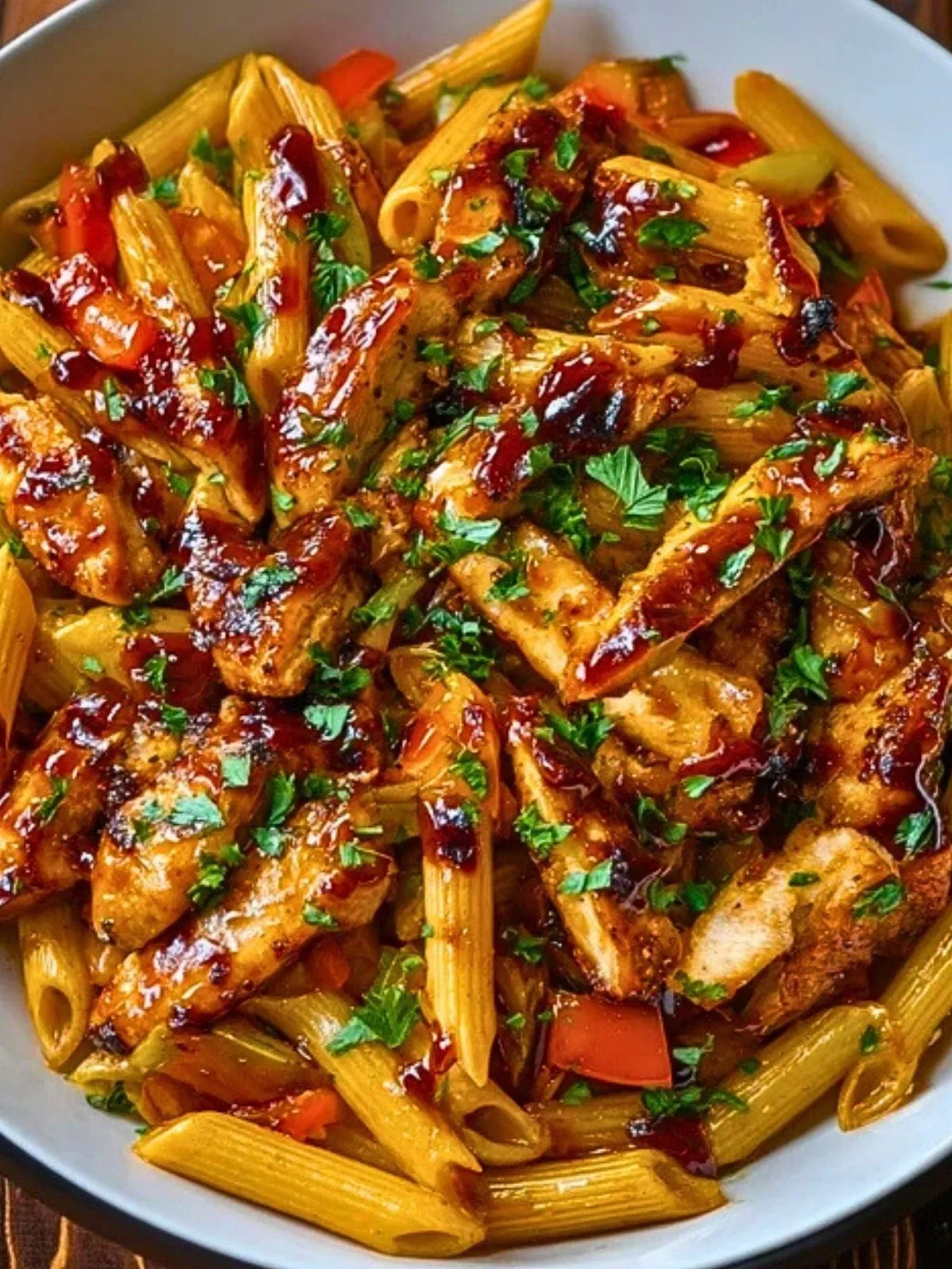 Les penne au poulet BBQ miel tannique sont un plat de pâtes inspiré des saveurs américaines et barbecue : du poulet doré à la poêle, enrobé d une sauce barbecue enrichie de miel pour la douceur et d une touche acidulée (vinaigre ou jus de citron) pour la note tannique qui équilibre le tout. Les penne, cuites al dente, absorbent cette sauce riche et brillante, créant un plat réconfortant, parfumé et terriblement gourmand.