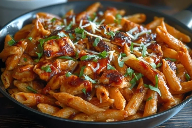 Savourez une assiette de penne généreusement nappées d une sauce barbecue au miel, légèrement tannique et caramélisée, qui enrobe de tendres morceaux de poulet grillé. Ce plat de pâtes joue sur les contrastes : sucré-salé, fumé-acidulé, fondant-croquant, le tout relevé par des herbes fraîches et un soupçon de fromage.