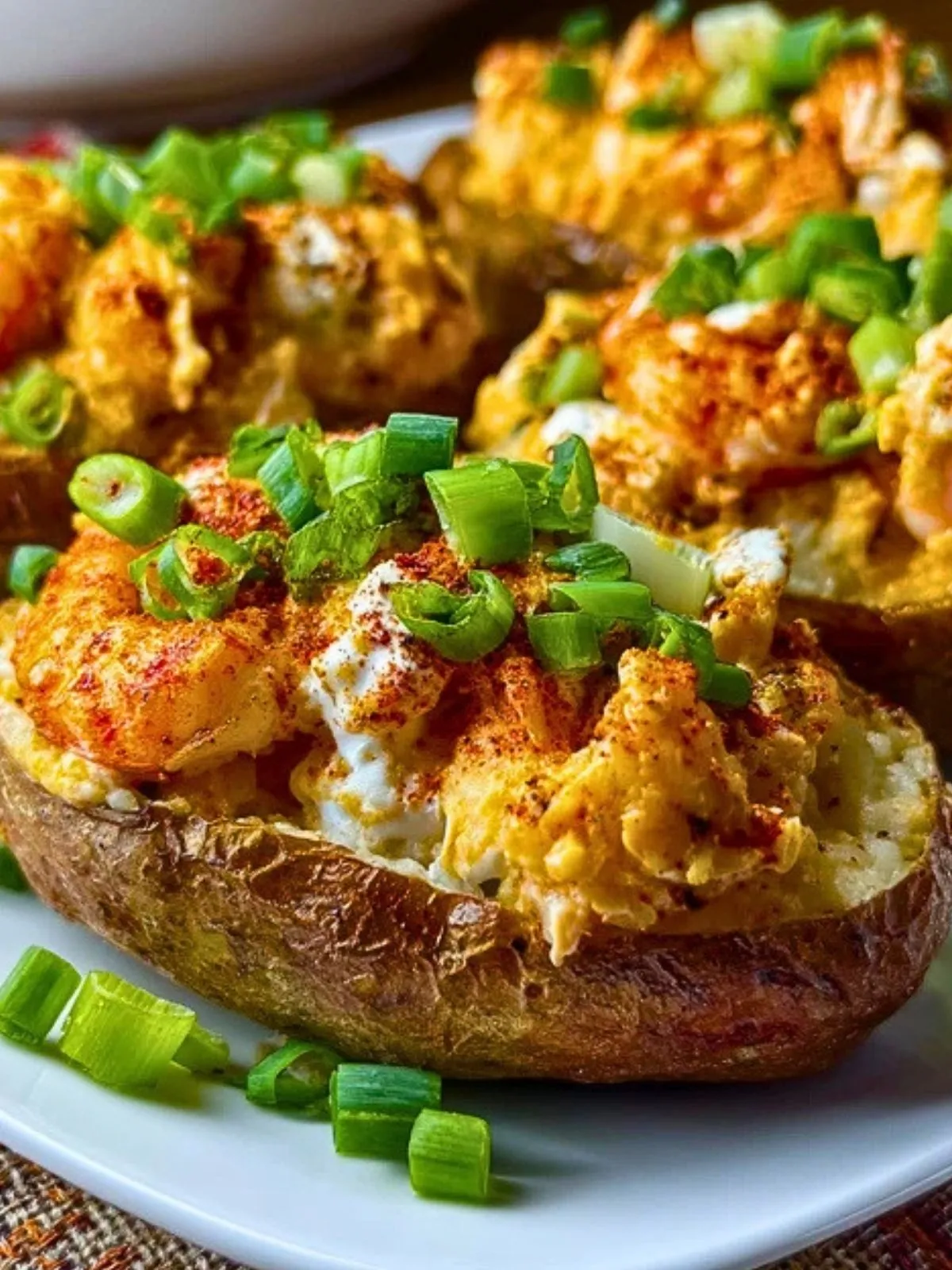 Ces pommes de terre farcies aux fruits de mer cajun associent une chair fondante, une garniture crémeuse au fromage, des crevettes tendres et du crabe délicat, le tout relevé par des épices cajun. C’est un plat généreux, convivial et savoureux, parfait pour un repas réconfortant avec une touche raffinée.