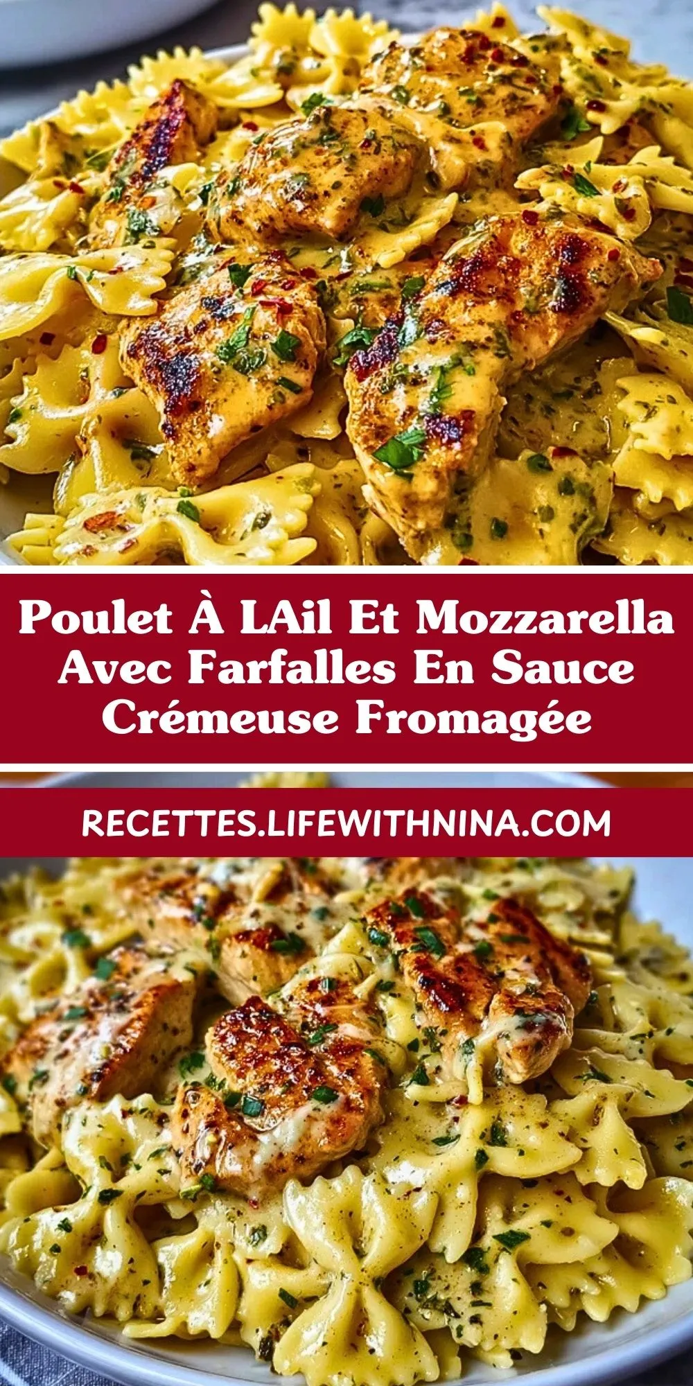 Comment préparer Poulet à l’Ail et Mozzarella avec Farfalles en Sauce Crémeuse Fromagée
