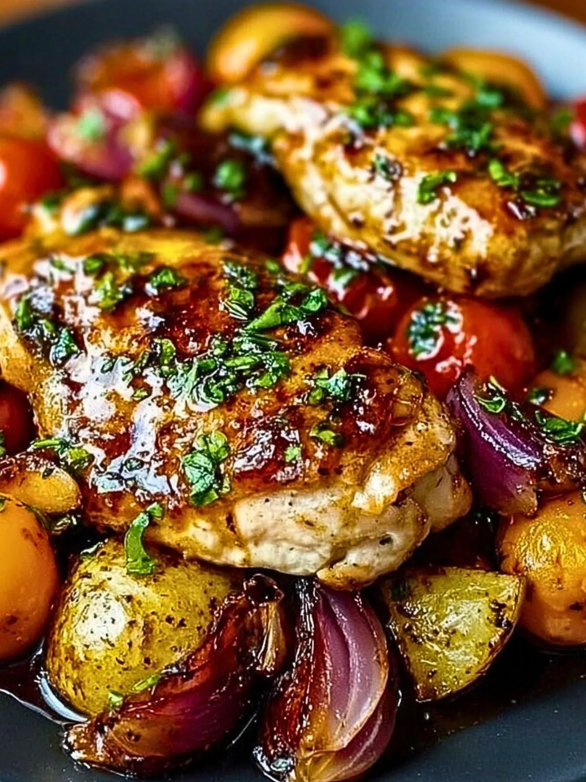 Savourez l’alliance parfaite entre le fondant du poulet et le croquant des légumes de saison, délicatement rôtis au four dans une sauce balsamique parfumée aux herbes fraîches. Cette recette colorée et conviviale, simple à préparer, évoque la cuisine de famille et les repas chaleureux partagés autour de la table.