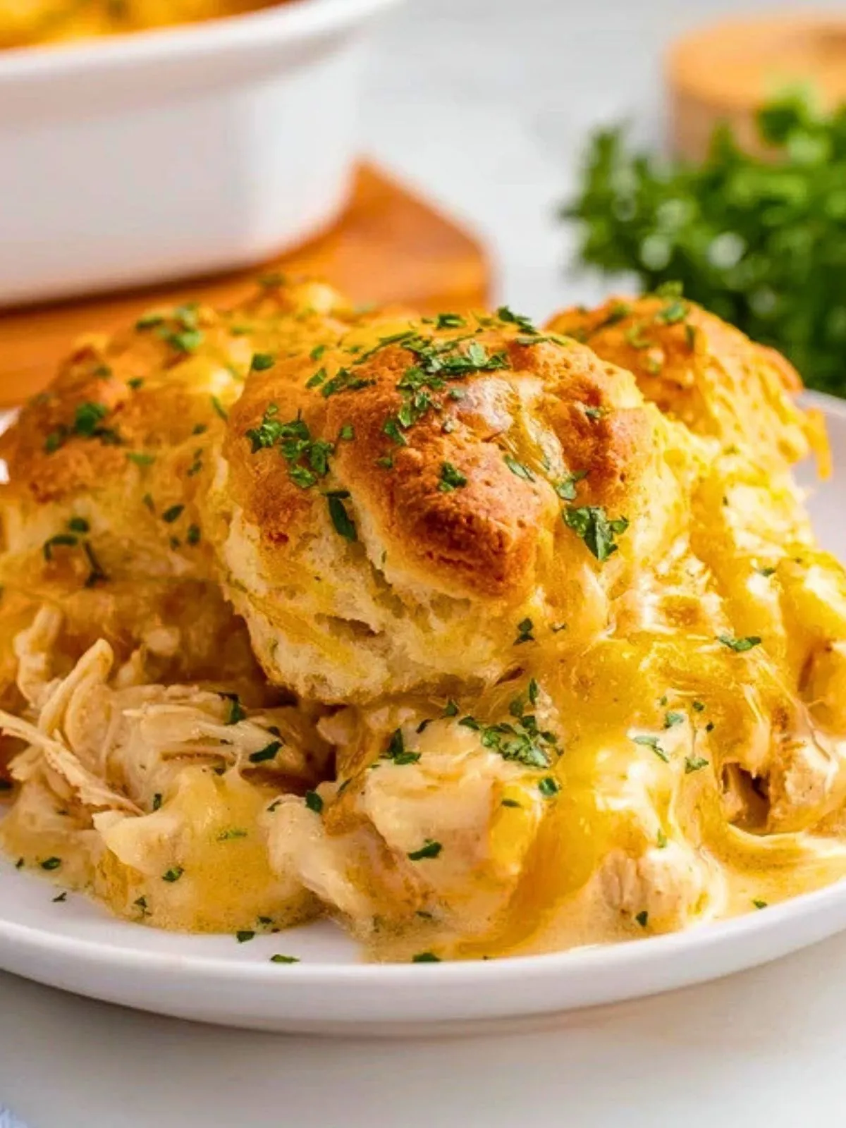 Le poulet gratiné aux biscuits est un plat familial crémeux et généreux, préparé avec du poulet effiloché, une sauce onctueuse, du fromage fondant et une couverture de biscuits dorés au four. C’est une recette simple, chaleureuse et parfaite pour un dîner réconfortant.