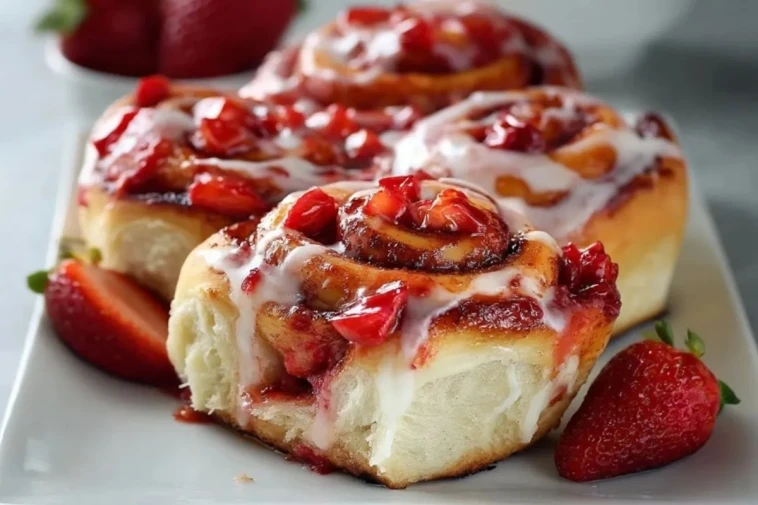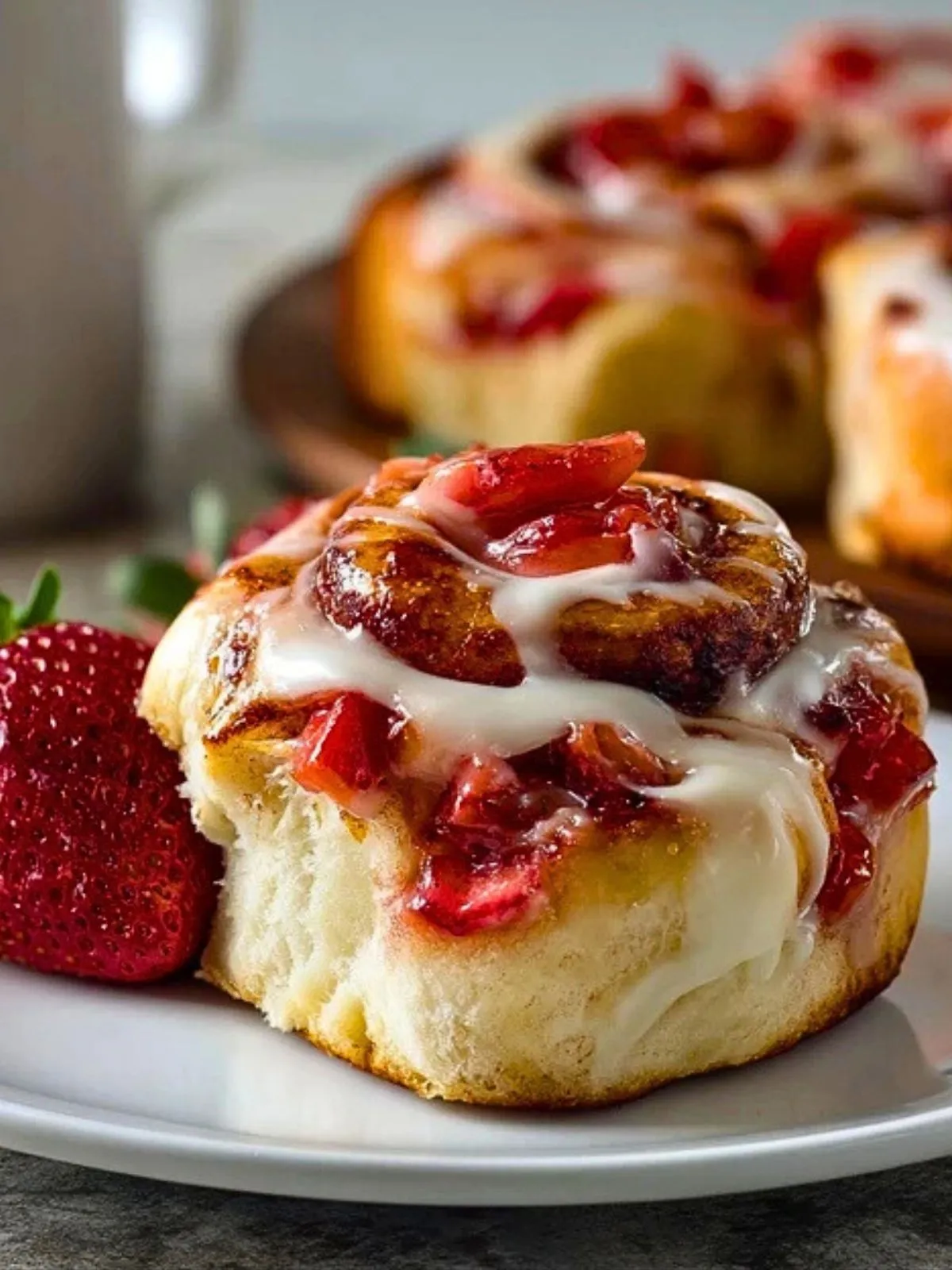 Des brioches ultra moelleuses, roulées en spirale, garnies de cannelle, de morceaux de fraises fondants et nappées d’un glaçage au fromage frais… c’est le genre de gourmandise qui transforme un simple petit-déjeuner en moment de fête.