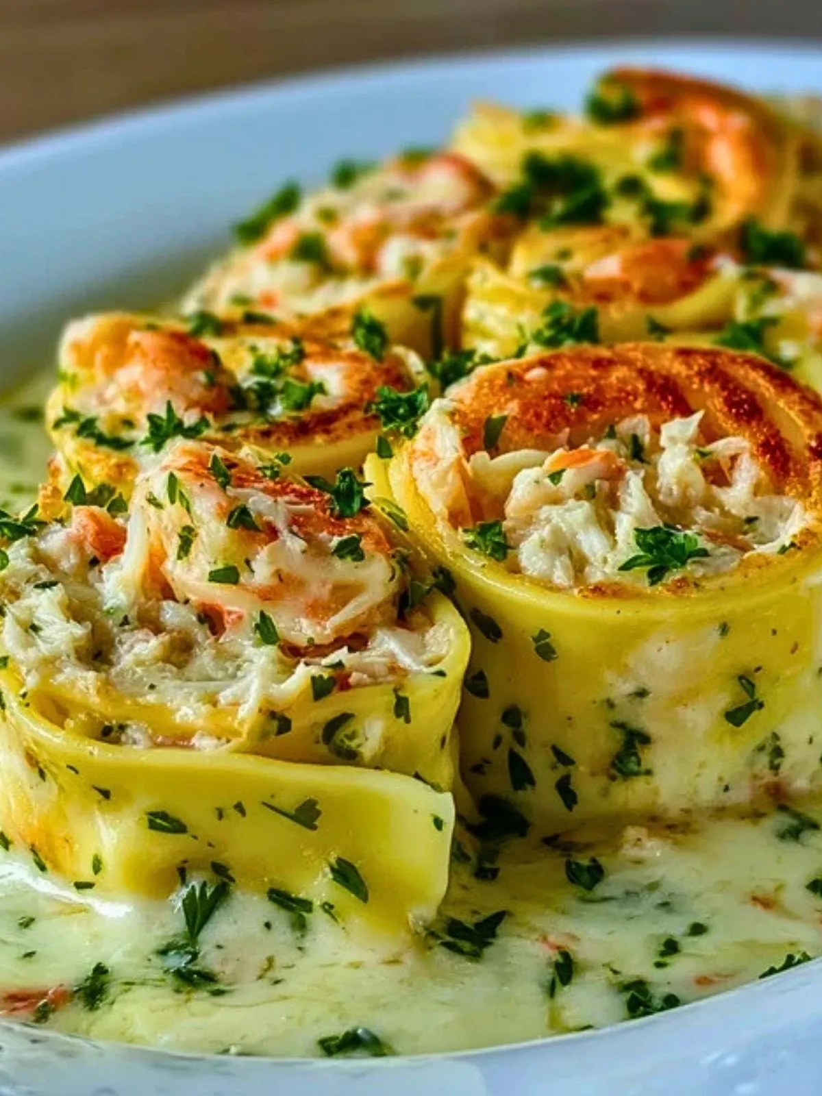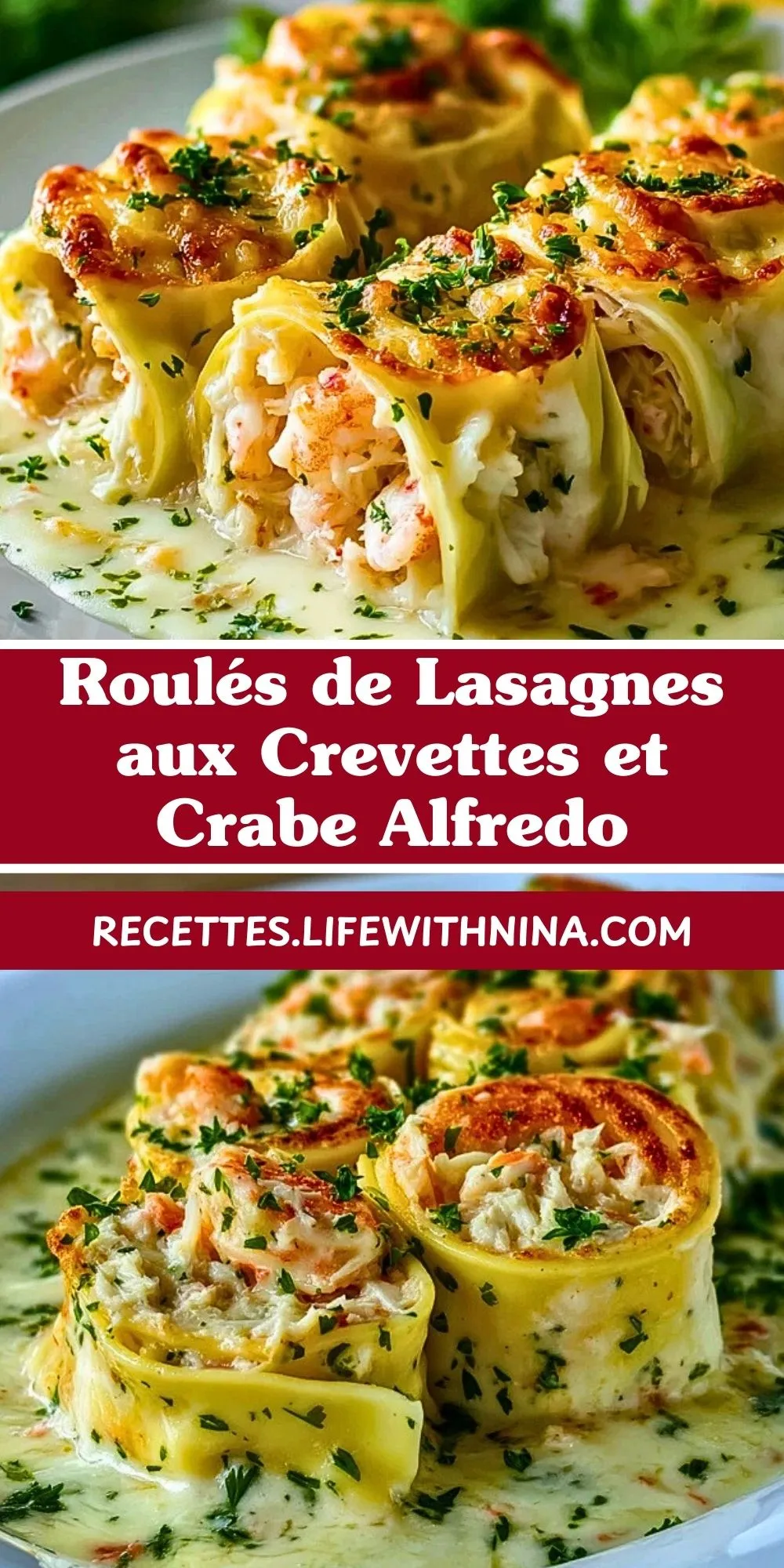 Roulés de Lasagnes aux Crevettes et Crabe Alfredo