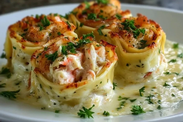 Pourquoi craquer pour ces roulés de lasagnes aux crevettes et crabe Alfredo ?