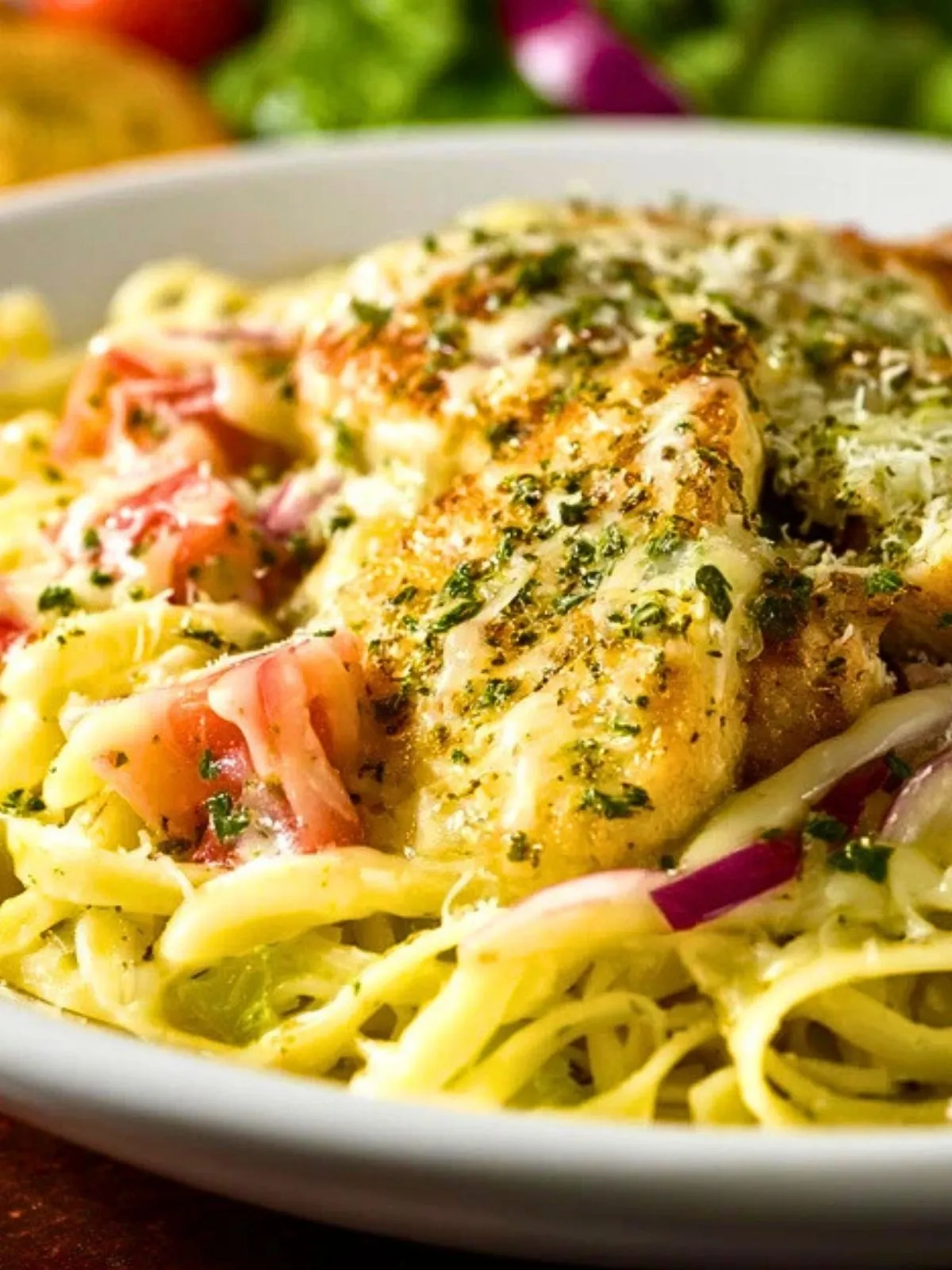 Et racontez-moi en commentaires comment vous l’avez préparée. Avez-vous ajouté plus de parmesan, remplacé le poulet par une autre garniture ou réalisé votre propre version de la sauce ? J’adore découvrir les petites touches personnelles qui rendent chaque assiette unique, et vos questions sont toujours les bienvenues.