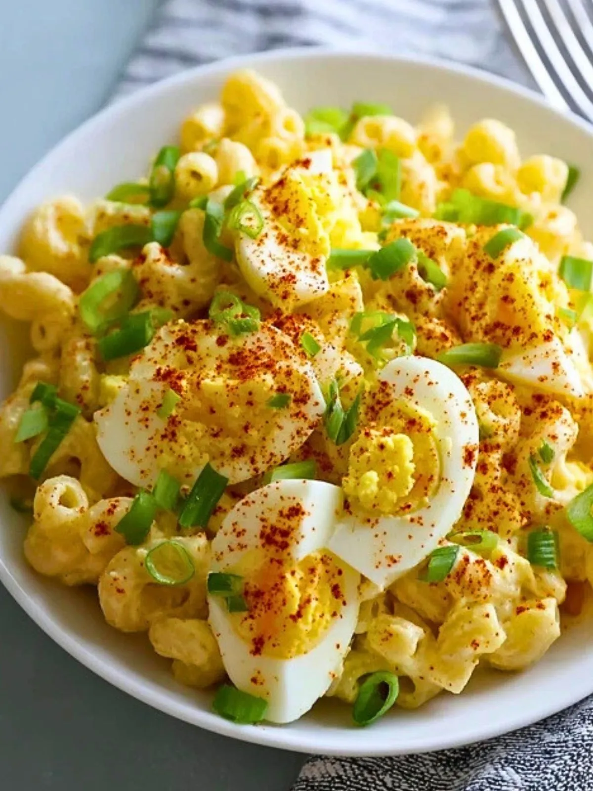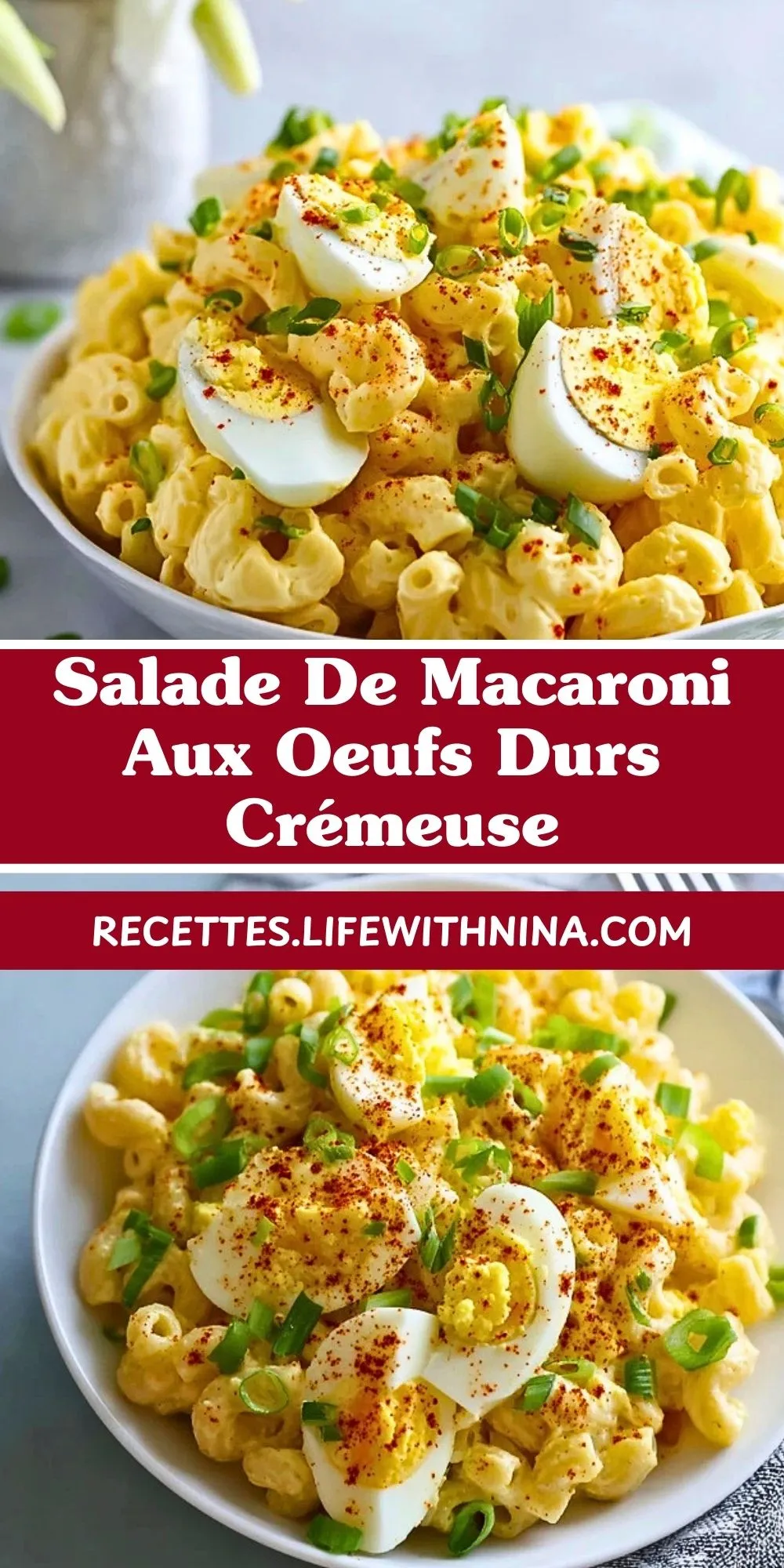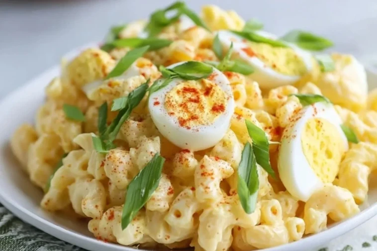 La salade de macaroni aux œufs durs crémeuse est un classique réconfortant qui rappelle les pique-niques d’été et les repas en famille. Fraîche, colorée et généreusement nappée d’une sauce onctueuse, elle séduit petits et grands par sa simplicité et sa gourmandise. Chaque bouchée marie la tendresse des pâtes, la douceur des œufs et la fraîcheur des herbes.