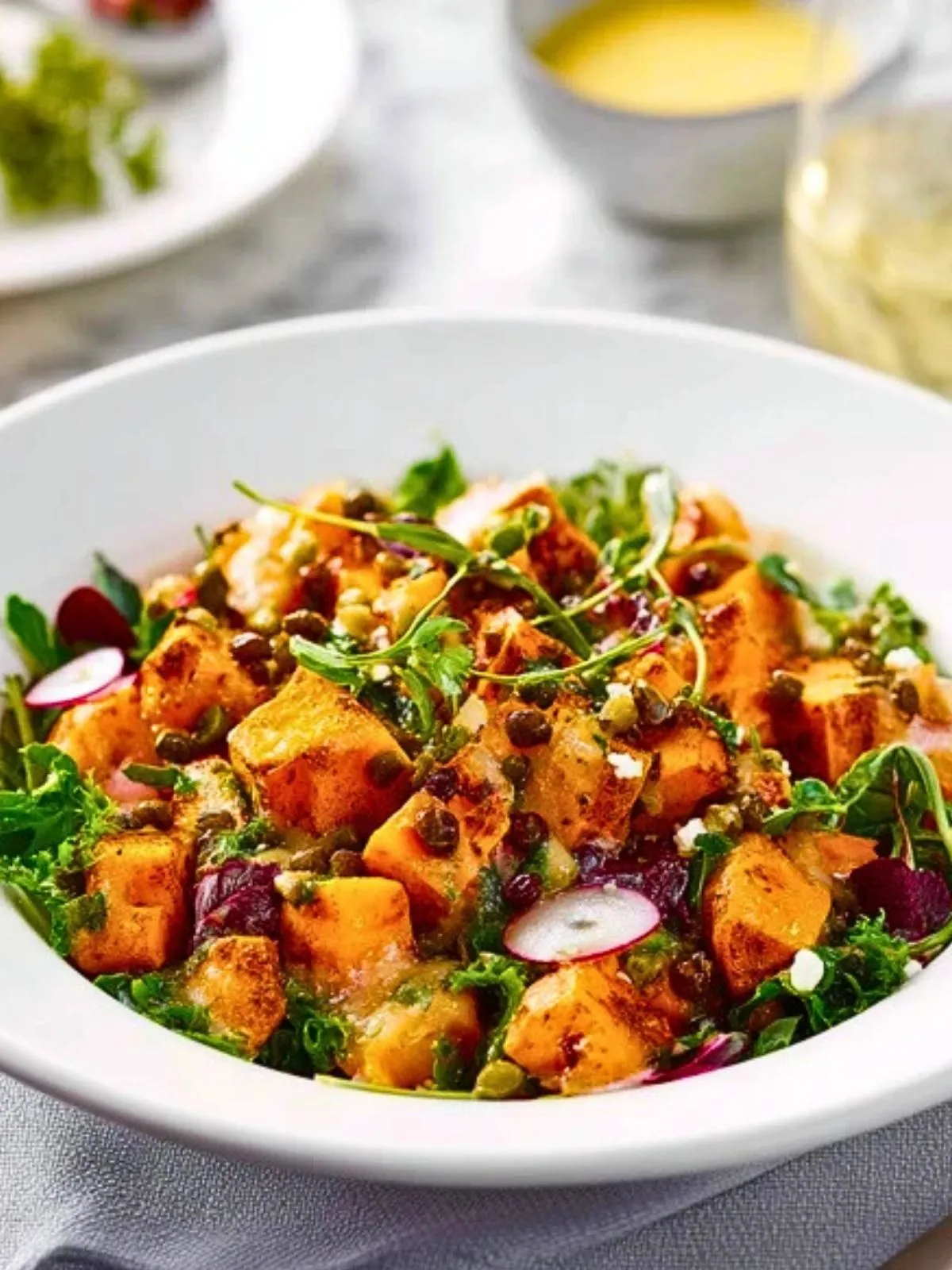 Colorée, gourmande et équilibrée, la salade de patates douces est une invitation à la fraîcheur tout en restant rassasiante. Ce plat, à la fois simple et raffiné, séduit par l’association de la douceur de la patate douce, la fraîcheur des herbes, le croquant des graines, et le pep’s des légumes frais. Idéale en accompagnement d’un plat principal ou en repas végétarien complet, cette salade apporte une touche d’originalité et de vitalité à votre table.