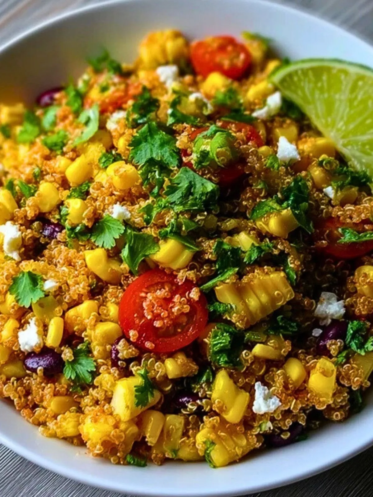 Cette salade de quinoa au maïs à la mexicaine est une invitation aux saveurs fraîches et colorées, parfaite pour les repas ensoleillés comme pour les lunchs équilibrés. Le quinoa moelleux s’imprègne des épices, tandis que le maïs apporte une douceur croquante qui contraste délicieusement avec les légumes frais.