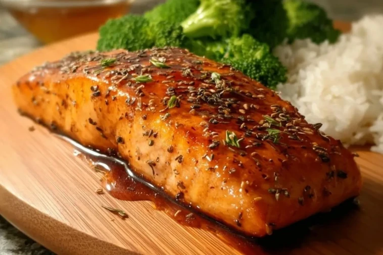 Délicatement caramélisé et incroyablement moelleux, le Saumon Cuit Au Four Glacé Au Sirop D’Érable est une recette qui marie simplicité et raffinement. Le glaçage brillant enveloppe le poisson d’une douceur subtilement boisée, parfaitement équilibrée par une touche salée.