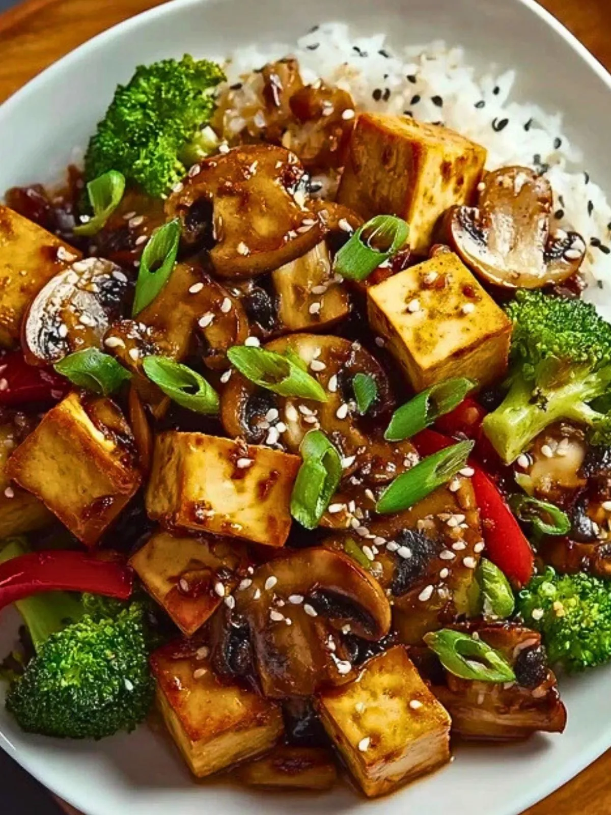 Ce sauté de champignons et tofu, parfumé à l’asiatique, combine tofu doré, légumes croquants et champignons tendres dans une sauce savoureuse. Un plat végétarien sain, complet, rapide, parfait pour les soirs de semaine ou les lunchs à emporter.