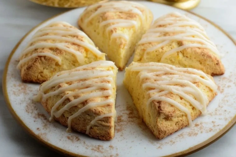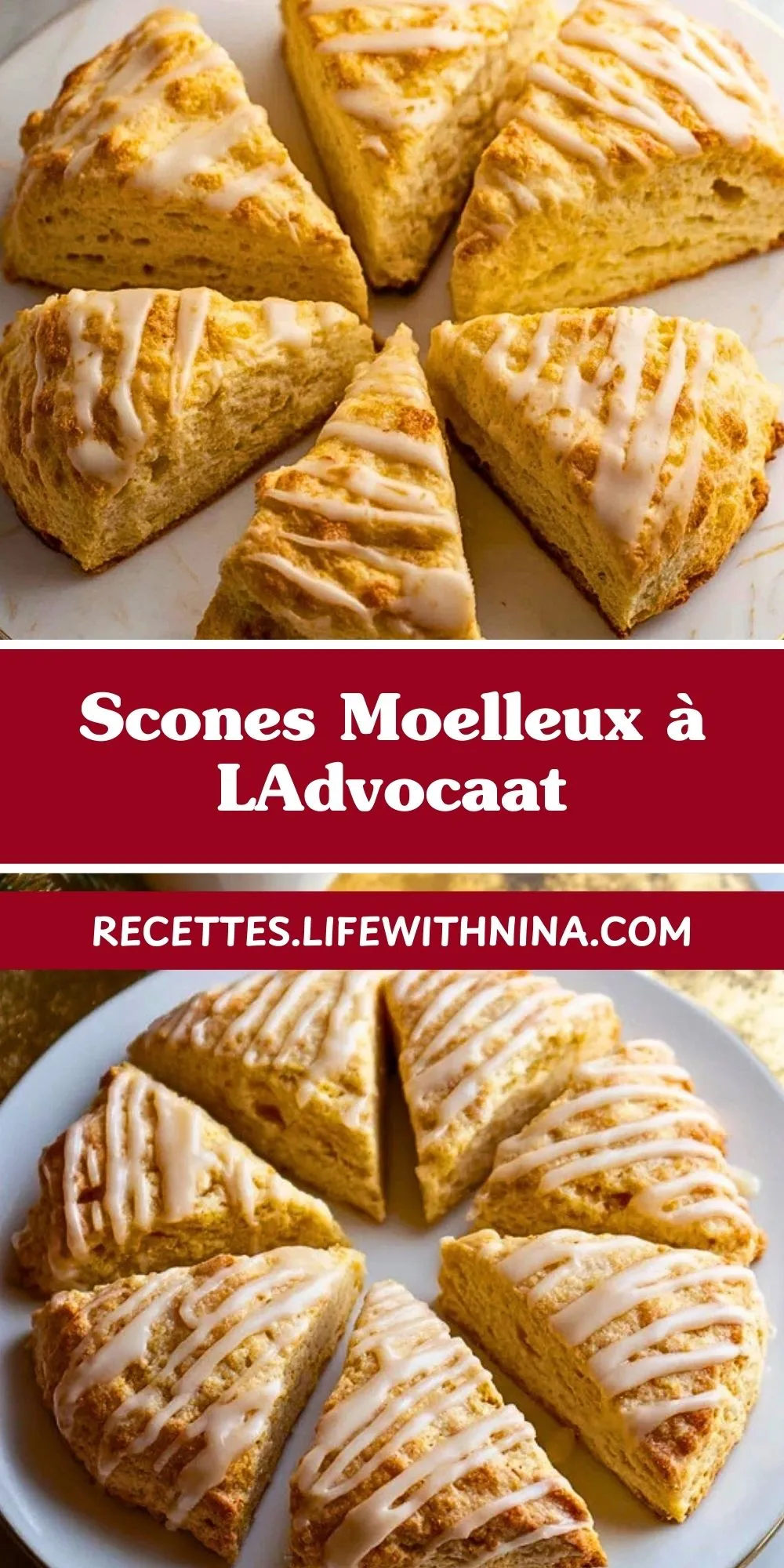 Ce qui rend ces scones si irrésistibles, c’est la douceur subtile de l’Advocaat, qui parfume délicatement la pâte tout en apportant une belle couleur dorée. Un filet de glaçage au sucre glace vient parfaire la gourmandise, pour un résultat aussi joli que savoureux.