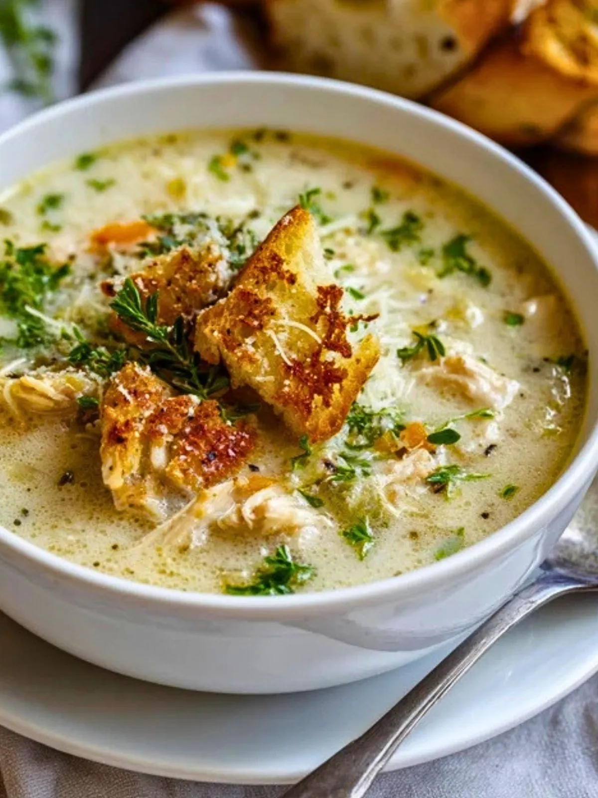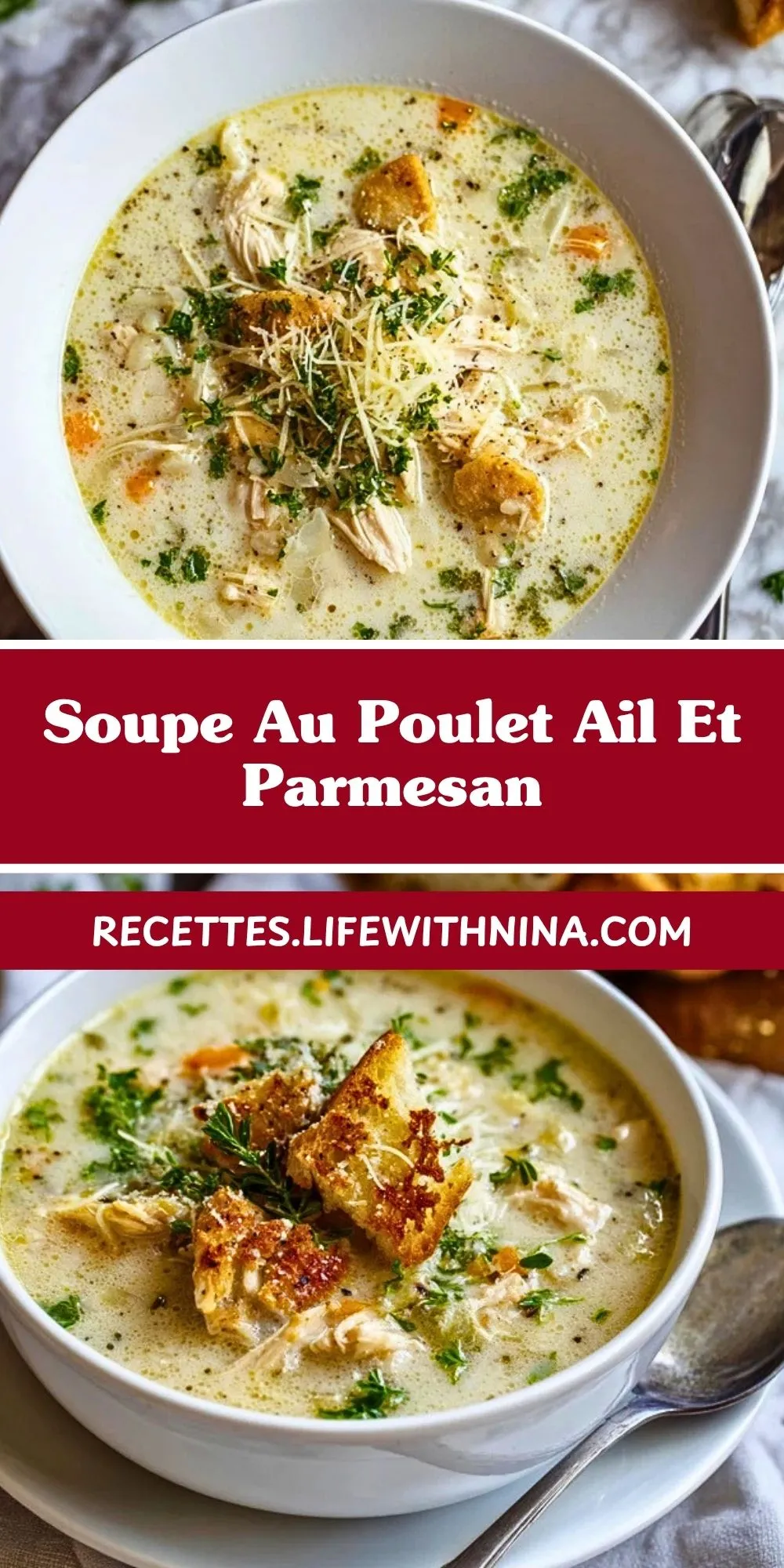 Keywords: soupe au poulet, soupe ail parmesan, soupe crémeuse au poulet, soupe réconfortante
