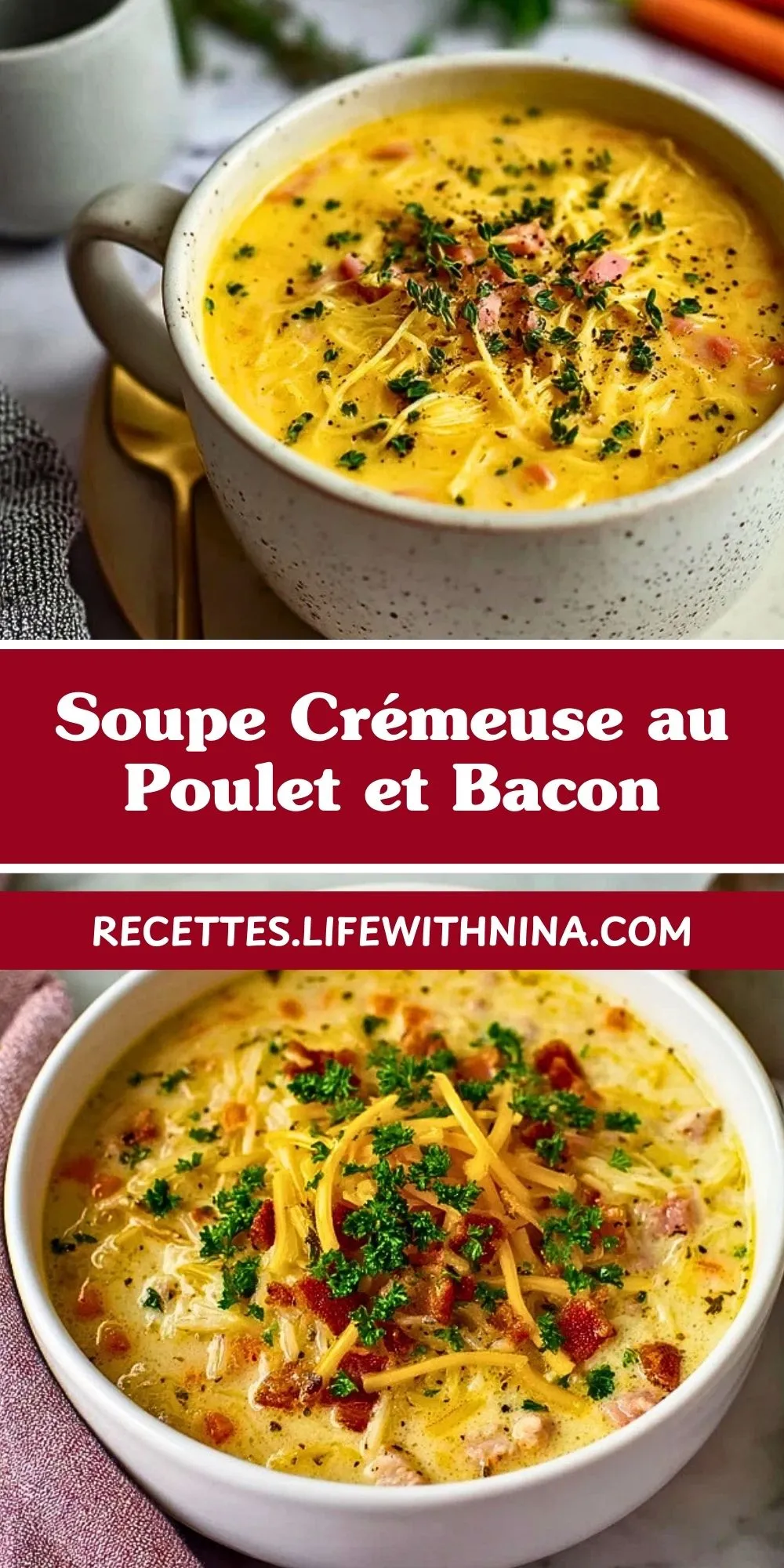 Keywords: soupe crémeuse au poulet et bacon, soupe au poulet, soupe réconfortante, bacon, vermicelles