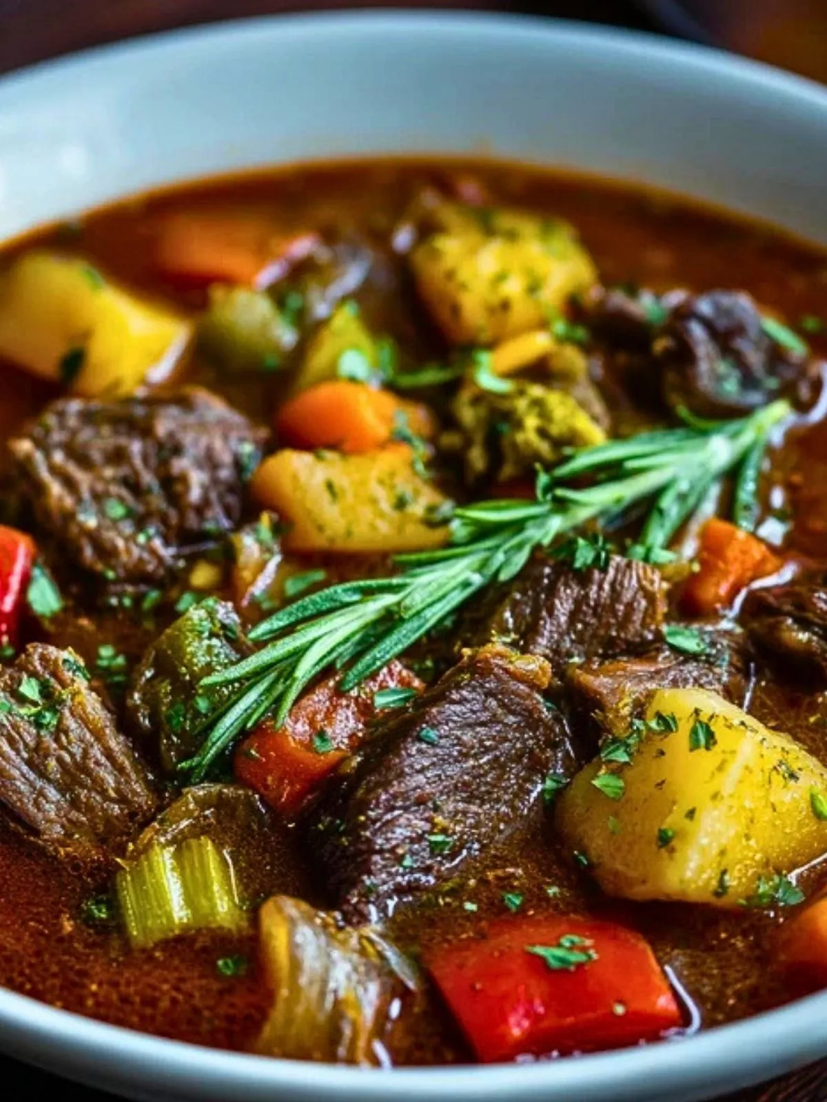 Une soupe familiale et réconfortante, où le bœuf mijote lentement avec des légumes frais, des herbes et un bouillon parfumé. Parfaite pour réchauffer les cœurs lors des soirées froides, cette soupe généreuse régale petits et grands avec sa viande fondante et ses légumes savoureux.