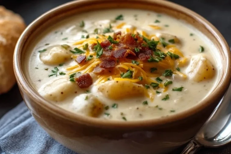Et racontez-moi en commentaires comment vous l’avez adaptée : avez-vous ajouté plus de fromage, remplacé les lardons par du poulet effiloché ou préparé une version complètement végétarienne ? J’adore découvrir vos variantes et vos idées pour rendre cette soupe encore plus généreuse. N’hésitez pas à poser vos questions – inspirons-nous ensemble pour des bols toujours plus gourmands.