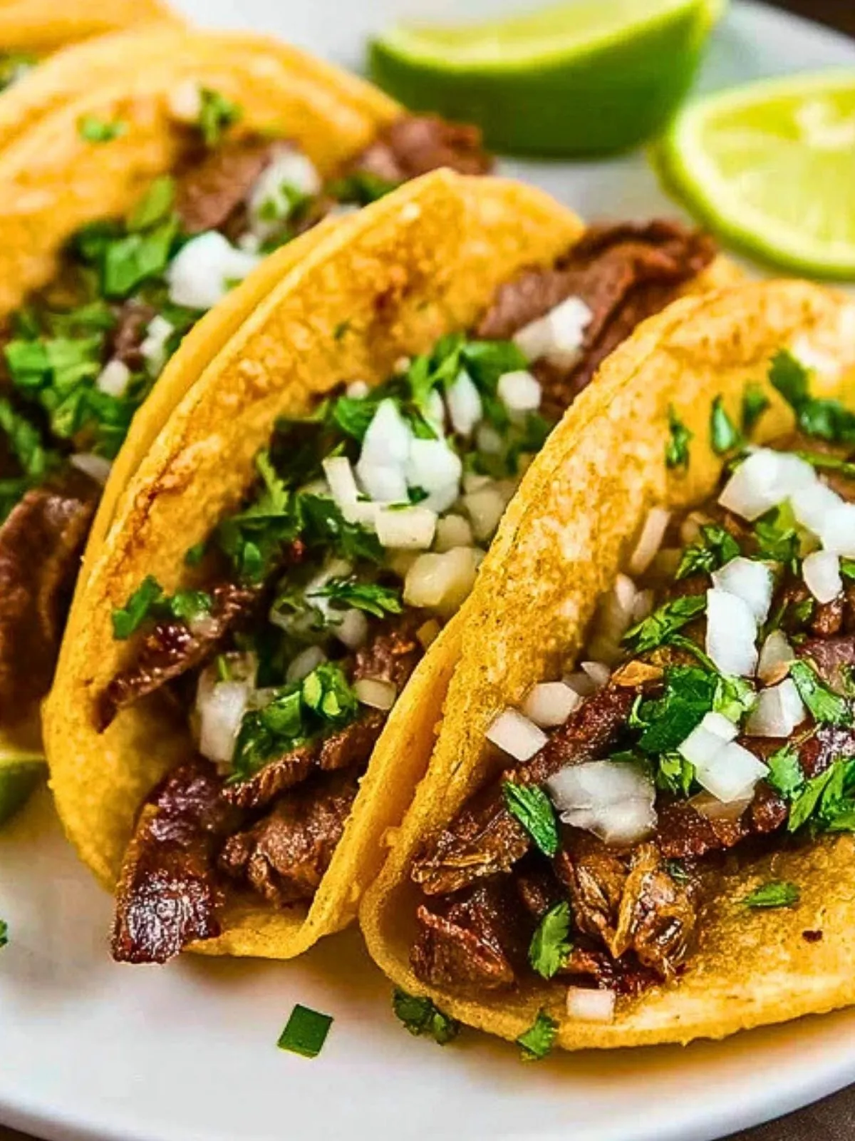 Ces tacos de carne asada sont garnis de fines lamelles de boeuf mariné et grillé, servies dans des tortillas de maïs chaudes avec oignon croquant, coriandre fraîche et quartiers de lime pour un repas convivial et plein de saveurs mexicaines.