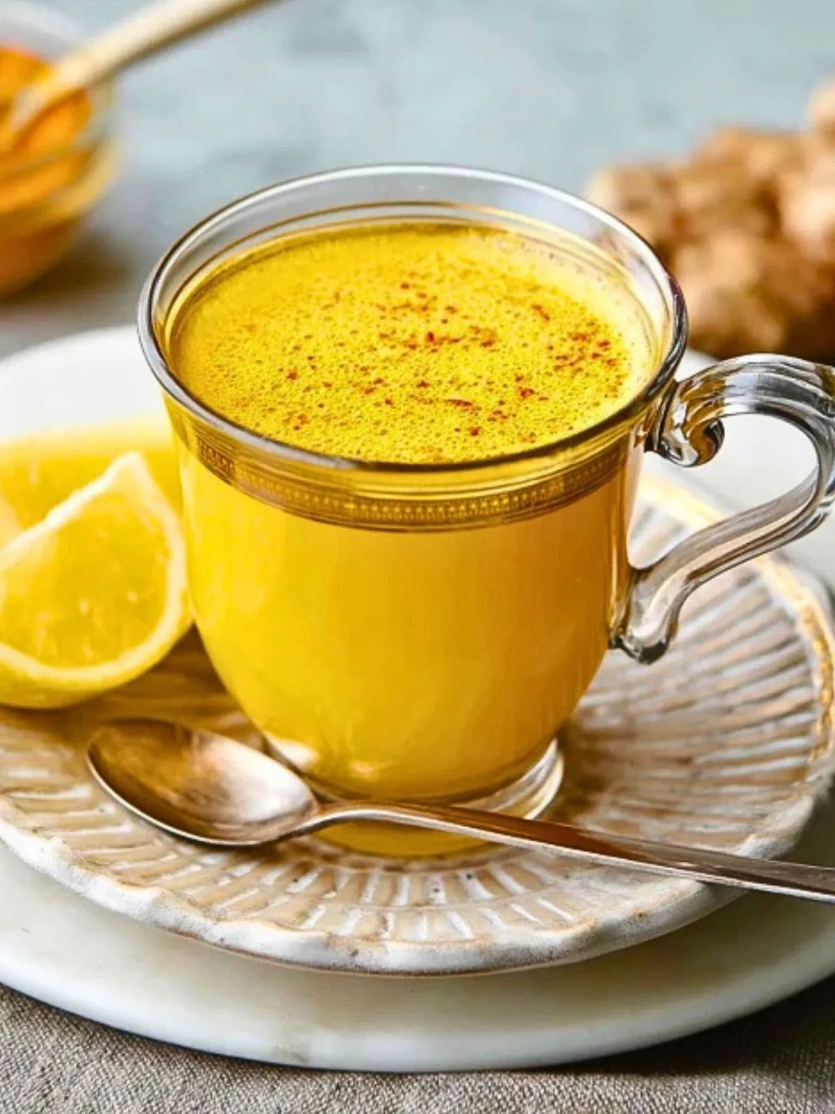 Parce qu’il demande très peu de temps et presque aucun effort : un peu d’eau chaude, quelques épices, un trait de citron et de miel, et c’est prêt. Cette boisson est idéale pour remplacer un thé classique ou un café tardif, surtout quand on a envie d’une tasse réconfortante mais légère. Le curcuma et le gingembre apportent leur chaleur caractéristique, le citron réveille le tout et le miel arrondit les saveurs. En plus, la recette se prépare aussi bien pour une tasse que pour une petite théière à partager.