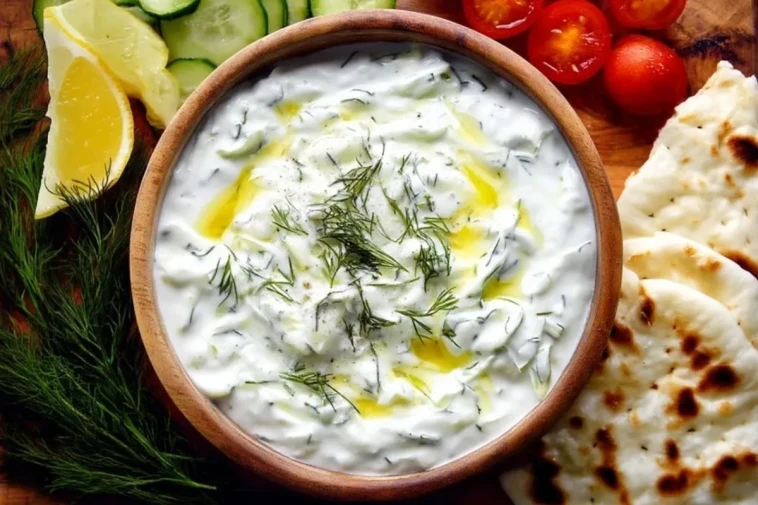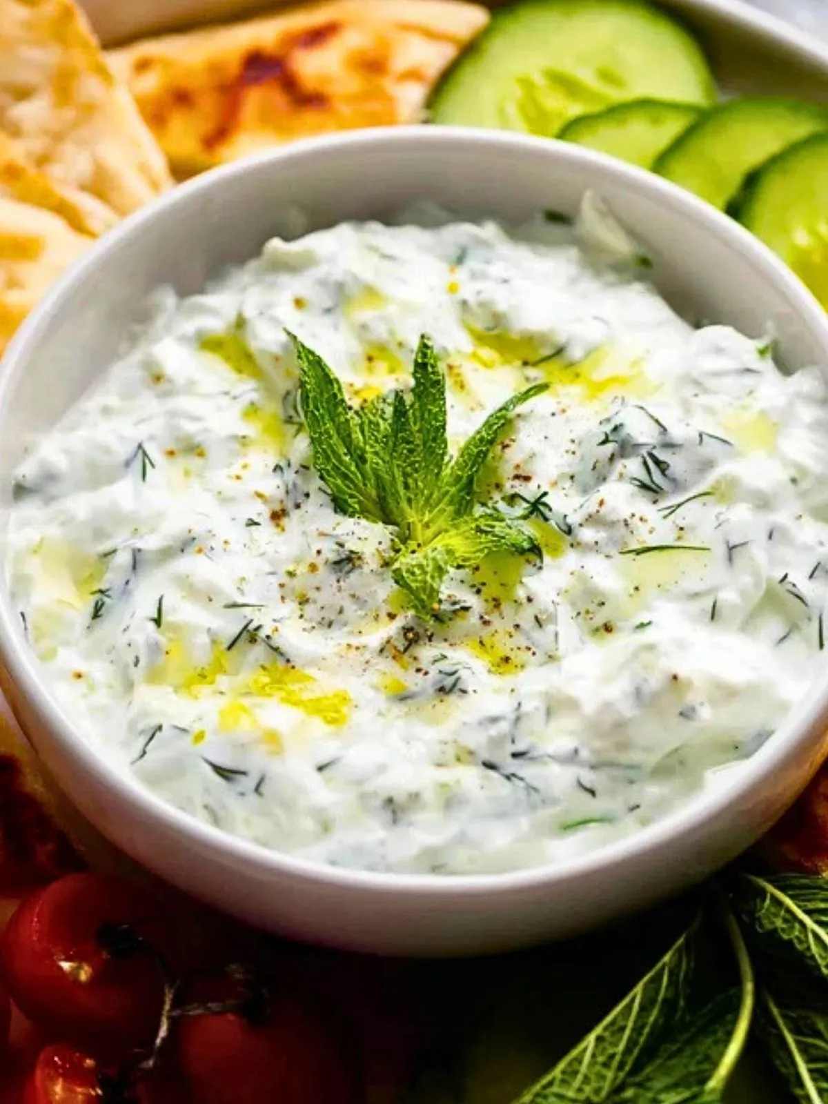 Ce tzatziki authentique facile est une sauce crémeuse au yaourt grec, au concombre râpé et aux herbes fraîches, relevée d’ail, de citron et d’un filet d’huile d’olive, parfaite pour accompagner pains pitas, crudités et grillades estivales.