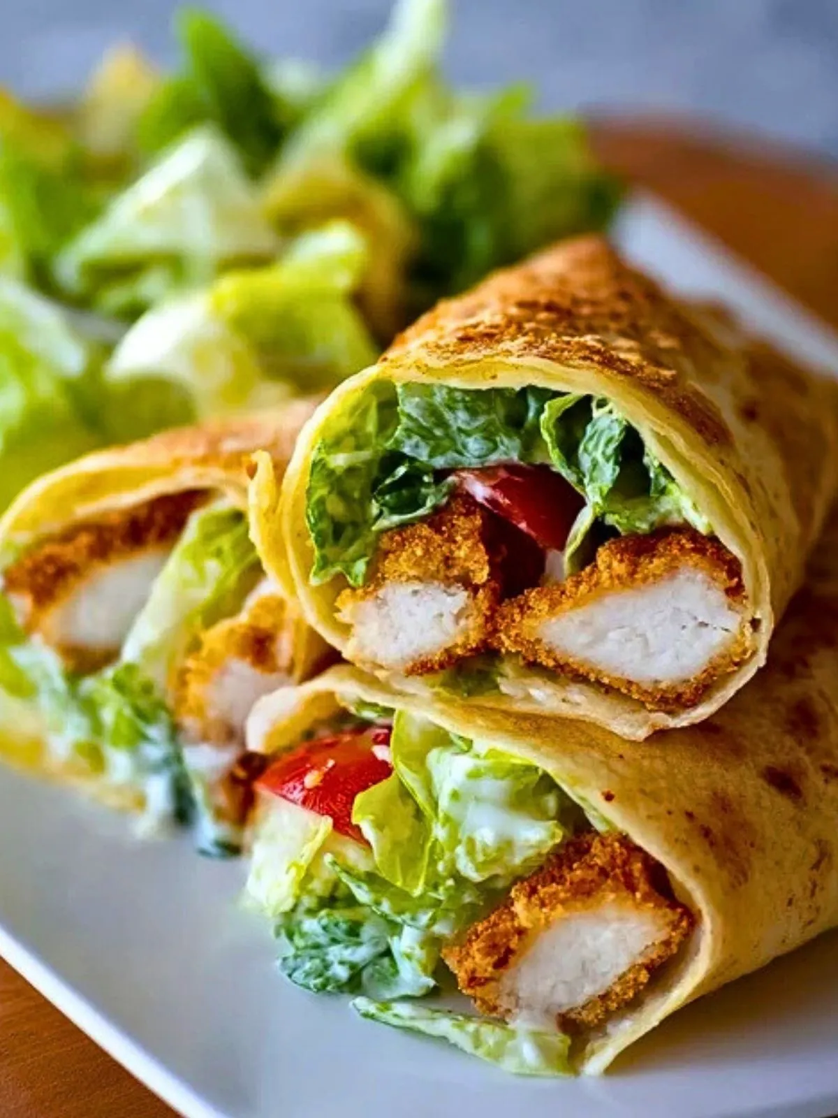 Un wrap généreux garni de poulet croustillant, de laitue romaine croquante, de parmesan et de sauce Caesar onctueuse. Une recette rapide, pratique et pleine de texture, idéale pour un déjeuner simple ou un dîner sans complication.